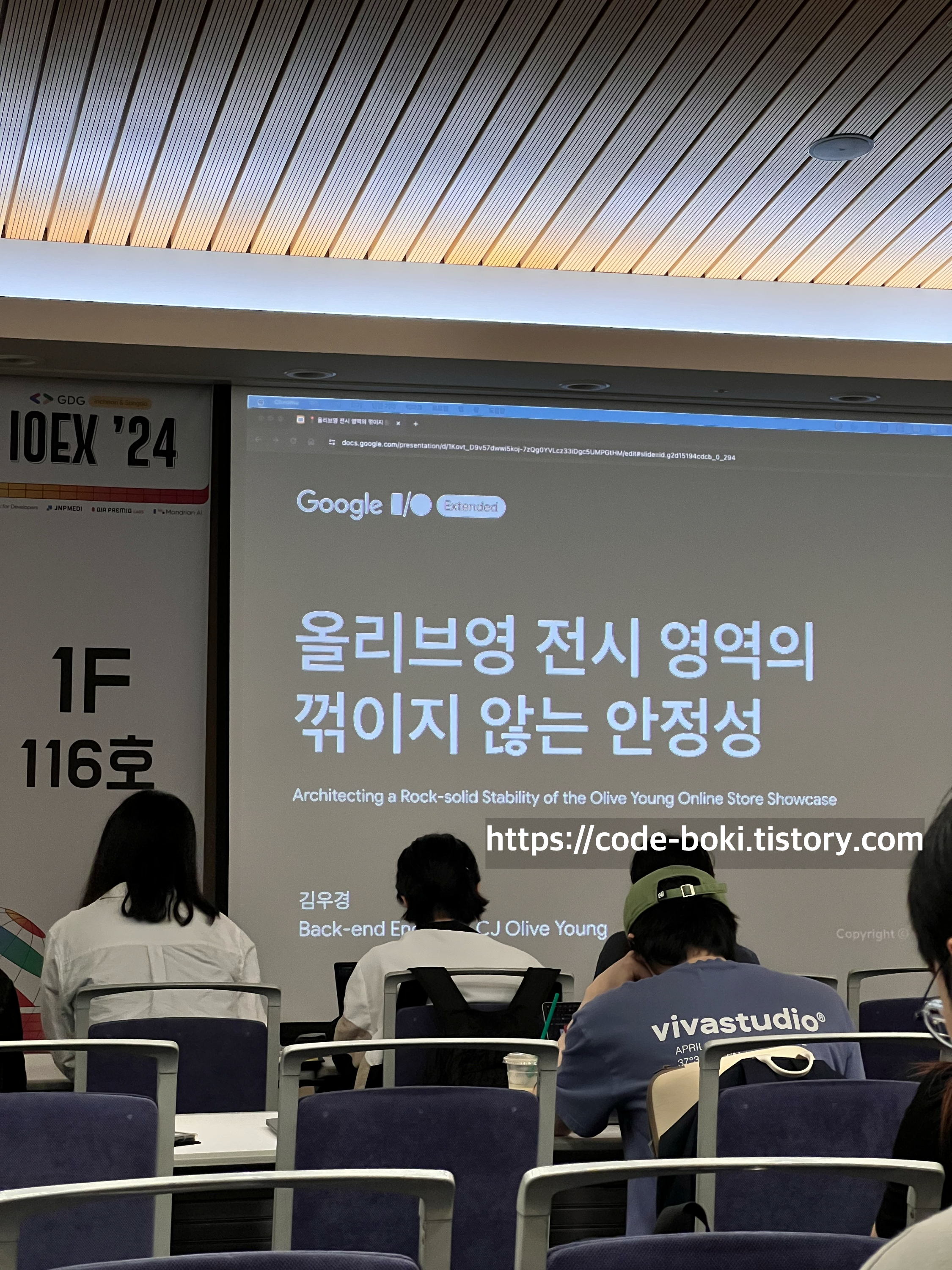 같은 116호에서 열린 세션이었지만, 기존 세션이 끝나면 전부 다 한번 나가고 들어와야 하기 때문에 여러 사람들이 밖으로 나갔다가 다시 들어오려고 했다. 그 와중에 인기가 엄청 많은 올리브영 세션...