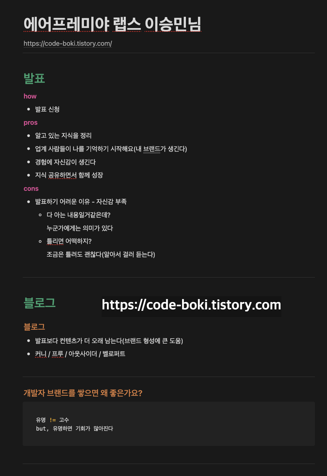 이번에는 개발바닥 유튜브에도 나온 에어프레미아 이승민님의 세션을 들으러 2층으로 향했다
