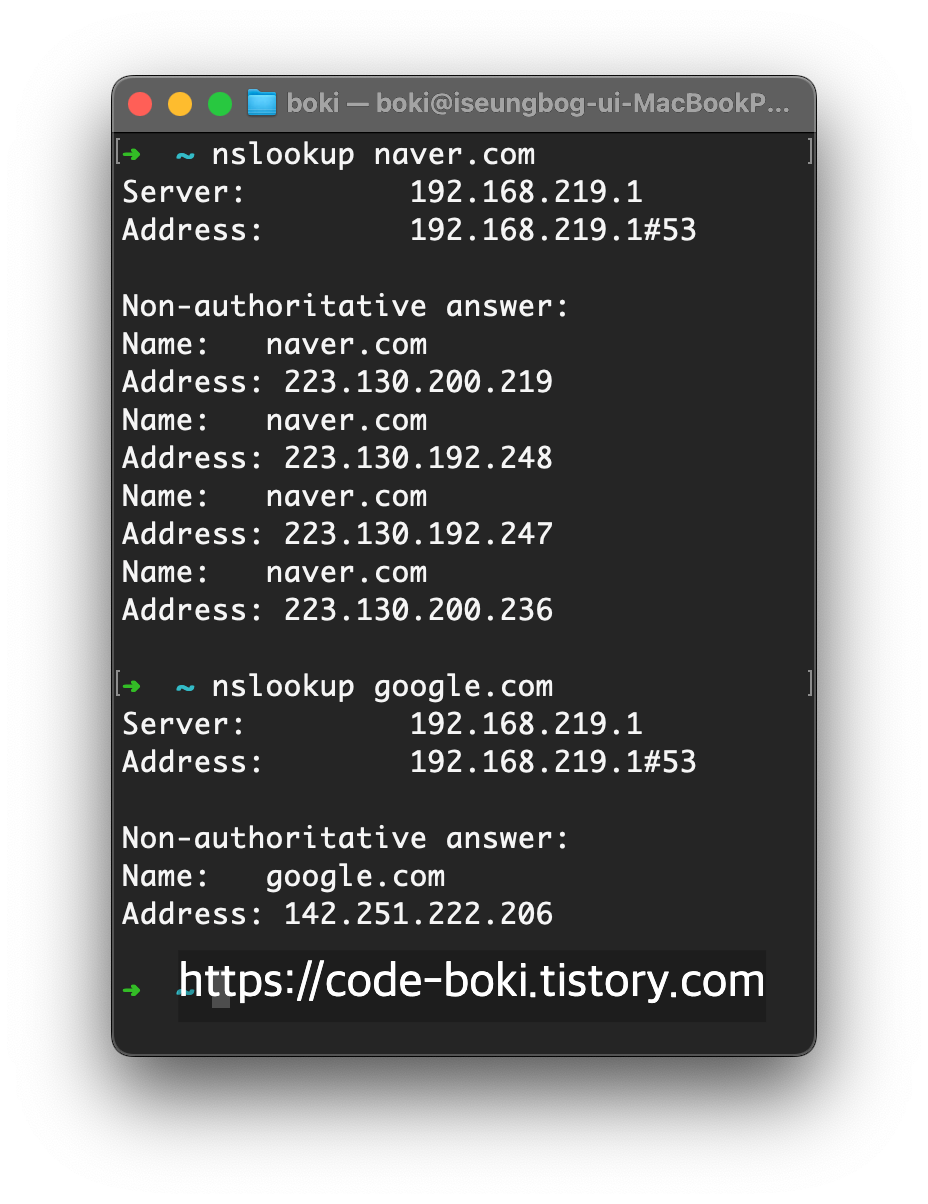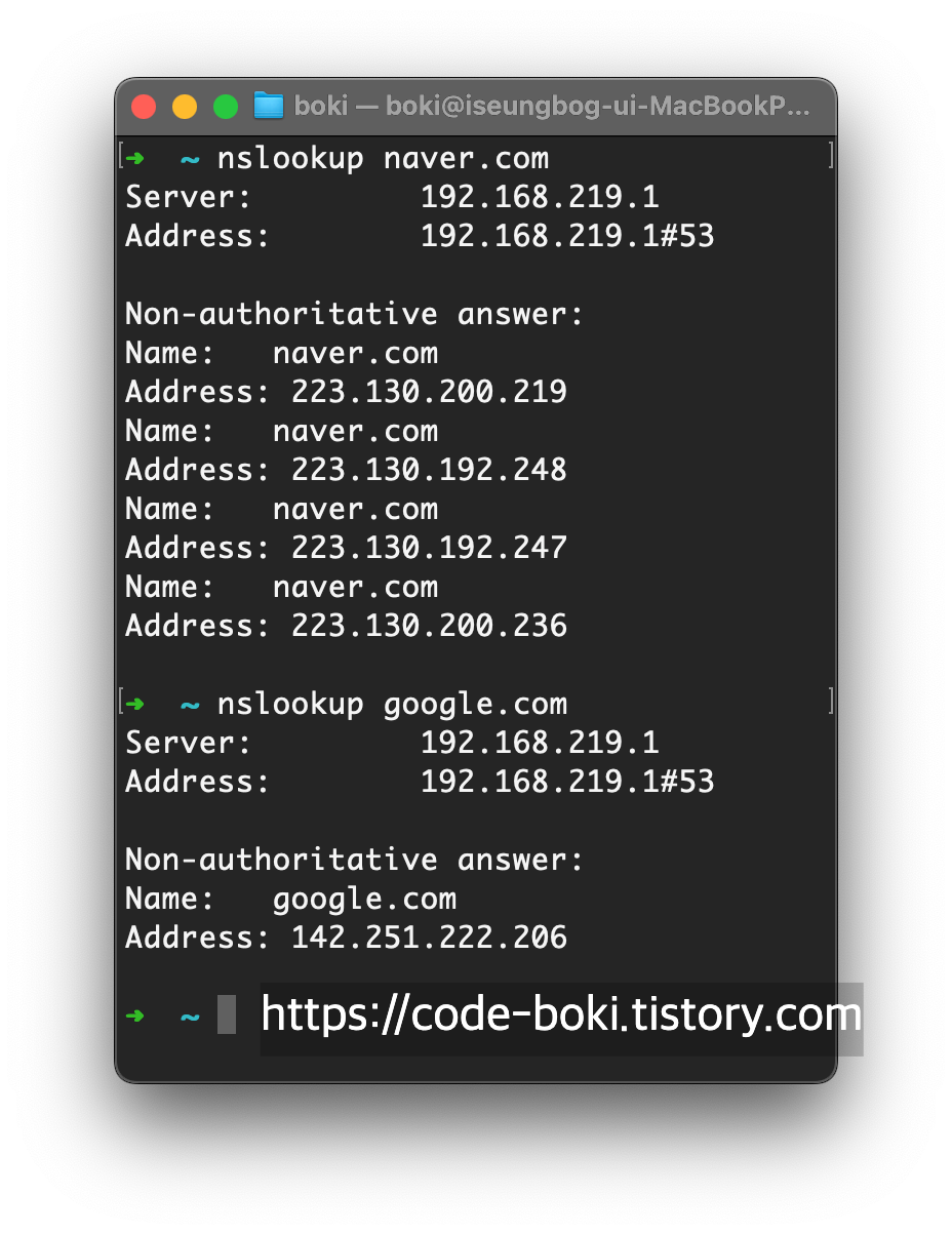 - 위에서 첨부했던 이미지에서 살펴보면.. authoritative answer라고 나온다!!