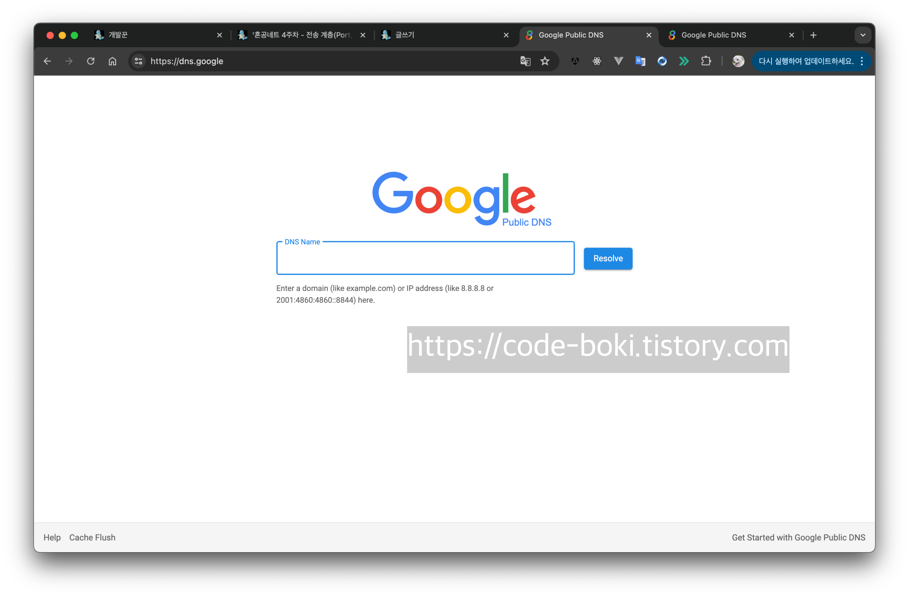 - 도메인 네임을 풀이(resolve)한다라고 표현
