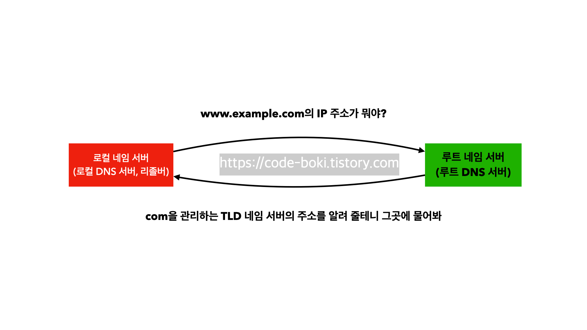 - 루트 네임 서버가 TLD 네임 서버에 질의