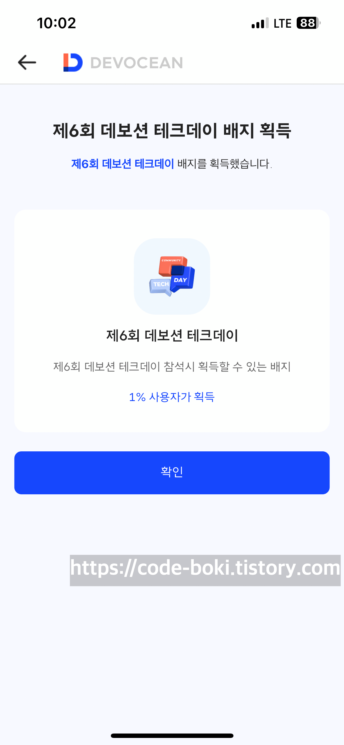 옹.. 데보션 테크데이 배지를 얻었다!!