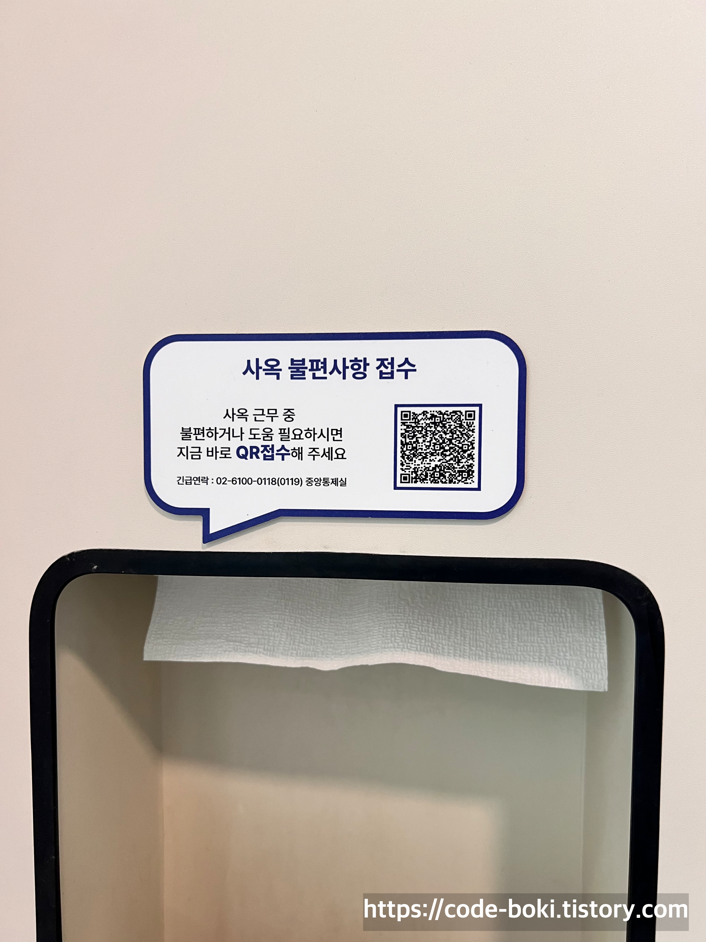 화장실에서 본 문구가 인상적이었다 "사옥 근무 중 불편하거나 ..."
