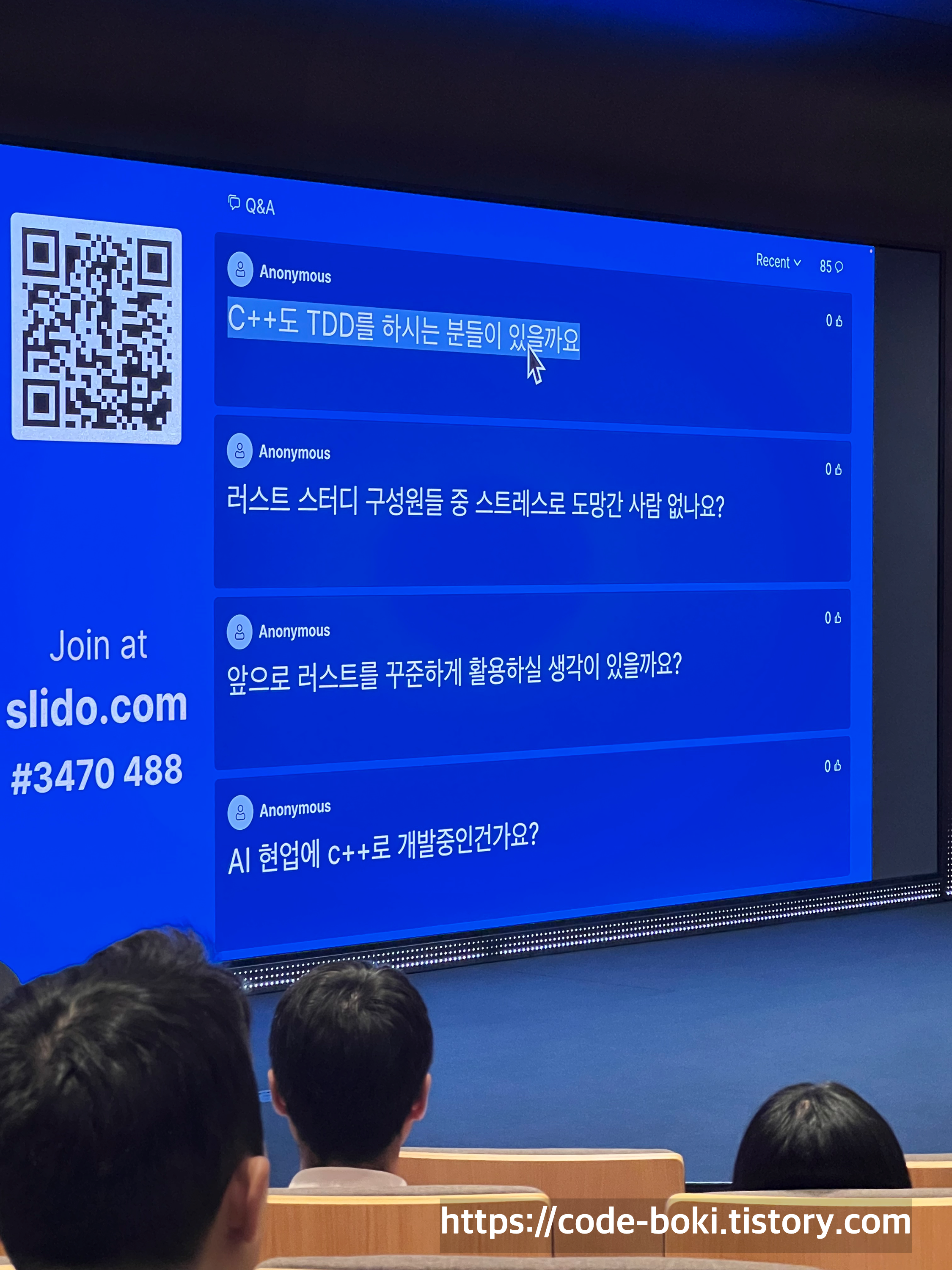 첫번째와 두번째 세션에서는 사진을 찍지 않았지만, 발표자들이 각각 발표 후에 질문을 받고 답해주는 시간도 있었다