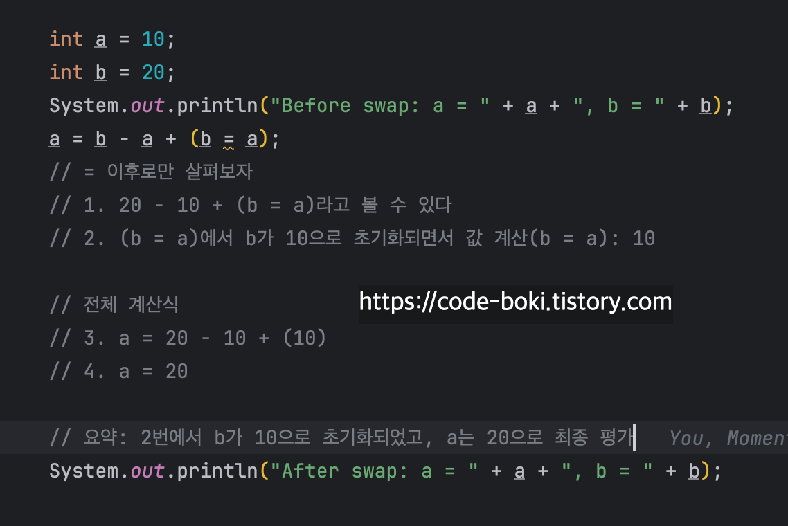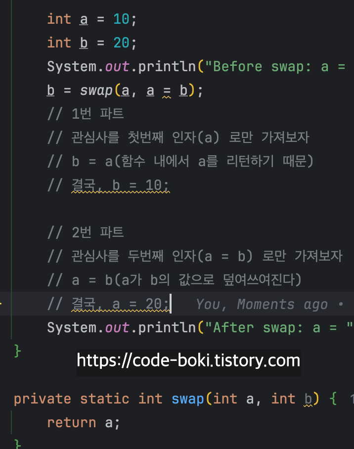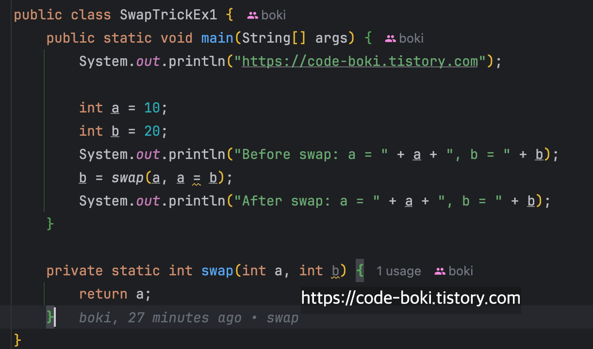 함수에서 바꾸지 않고, 값 계산식으로만 사용해서 바꾸기 (Single-line Swap)