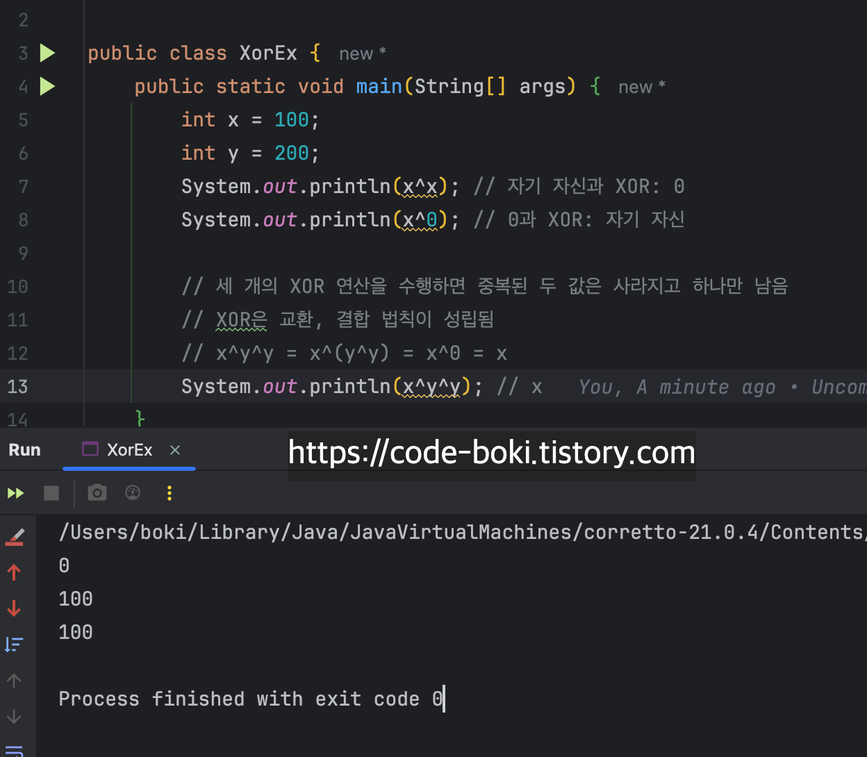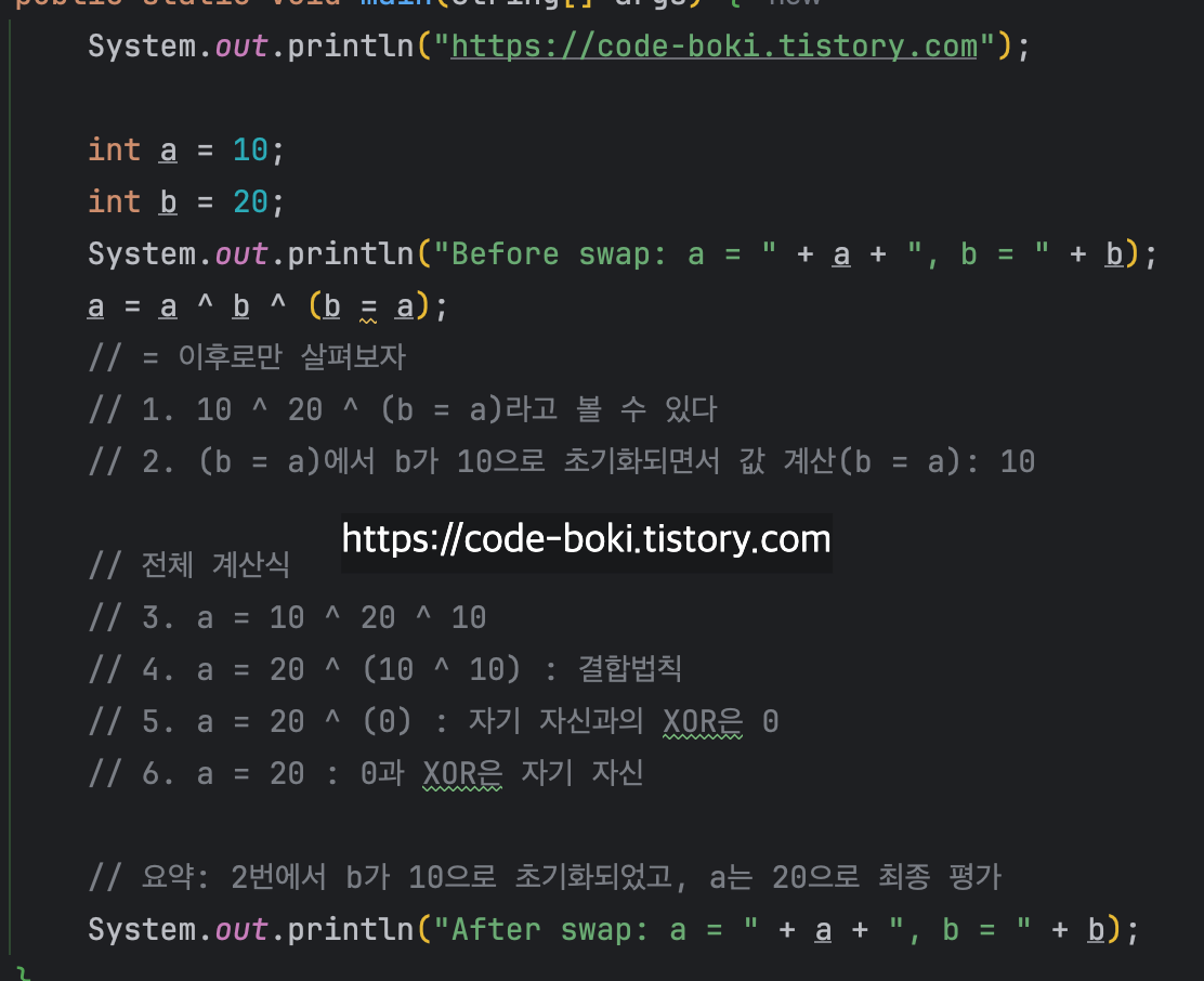 먼저 XOR 연산자(^)는 여러 특징을 갖고 있다