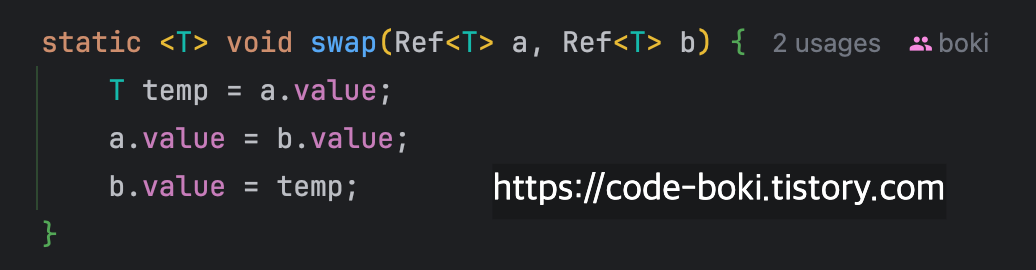 이 swap 함수는 일반적이다. 그럼 이 함수를 호출하는 부분을 상상해보자..