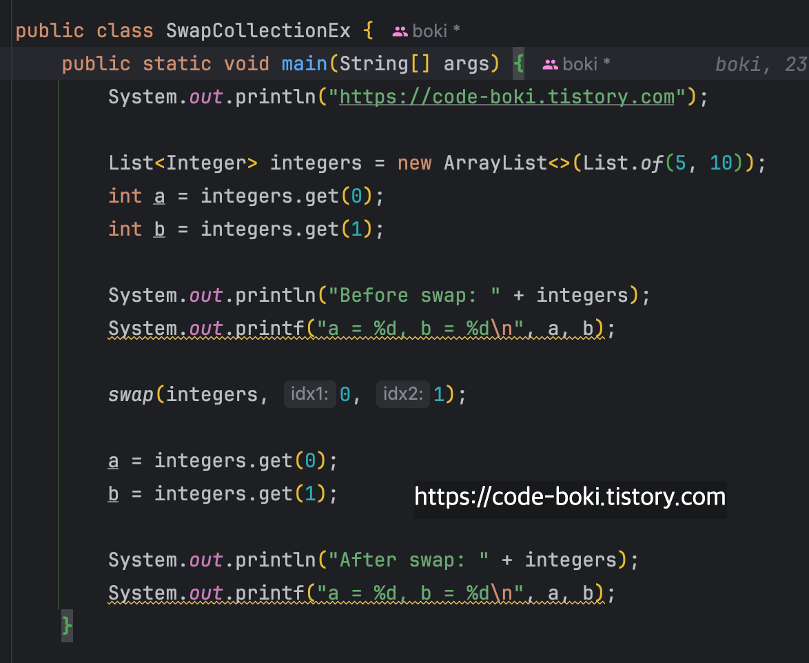 Collections.swap(List, index1, index2)을 사용해서 바꿀 것이다