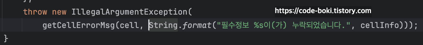 String.format과 유사하지만, multi line을 쓸 수 있다던지(안내메시지) 위의 예제코드처럼 %s, %d 등을 활용해서 포맷팅 처리할수도 있다. 거의 함께 trim()이 사용된다