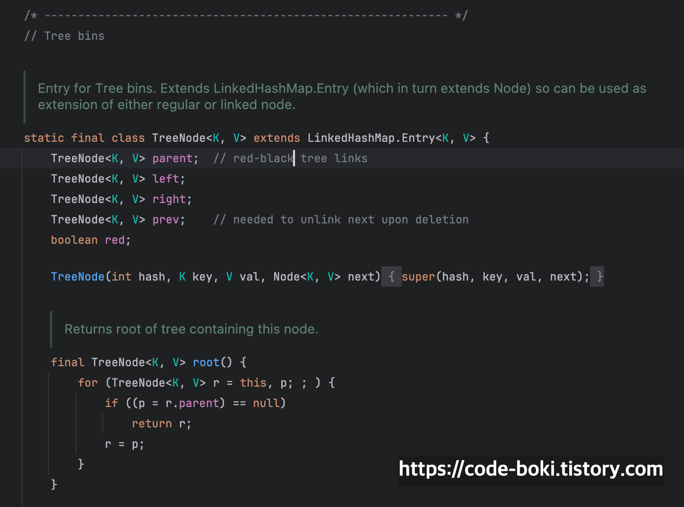- 만약 hashCode()가 동일하고, equals() 메서드가 true를 반환하면, 중복된 요소로 판단하여 새로운 노드를 추가하지 않고 기존 노드를 반환합니다.
