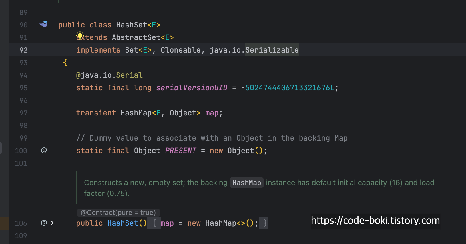 참고로 hashSet은 내부적으로 HashMap을 사용한다