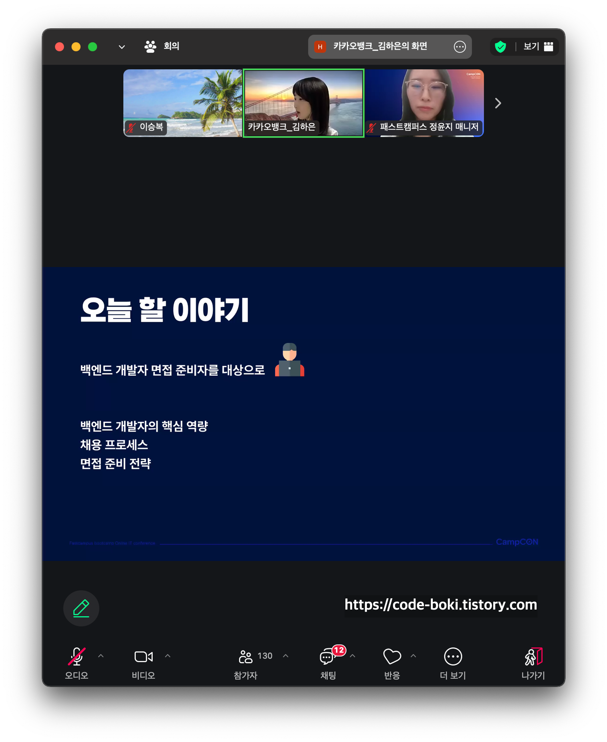 패스트캠퍼스에서 매월 마지막주 화요일 주최하는 무료 IT 커리어 컨퍼런스 캠프콘(CampCon)에서 IT직무 분야의 전문가들과 온라인으로 만나 커리어와 기술에 대한 이야기를 나누고, 가슴 속에 쌓