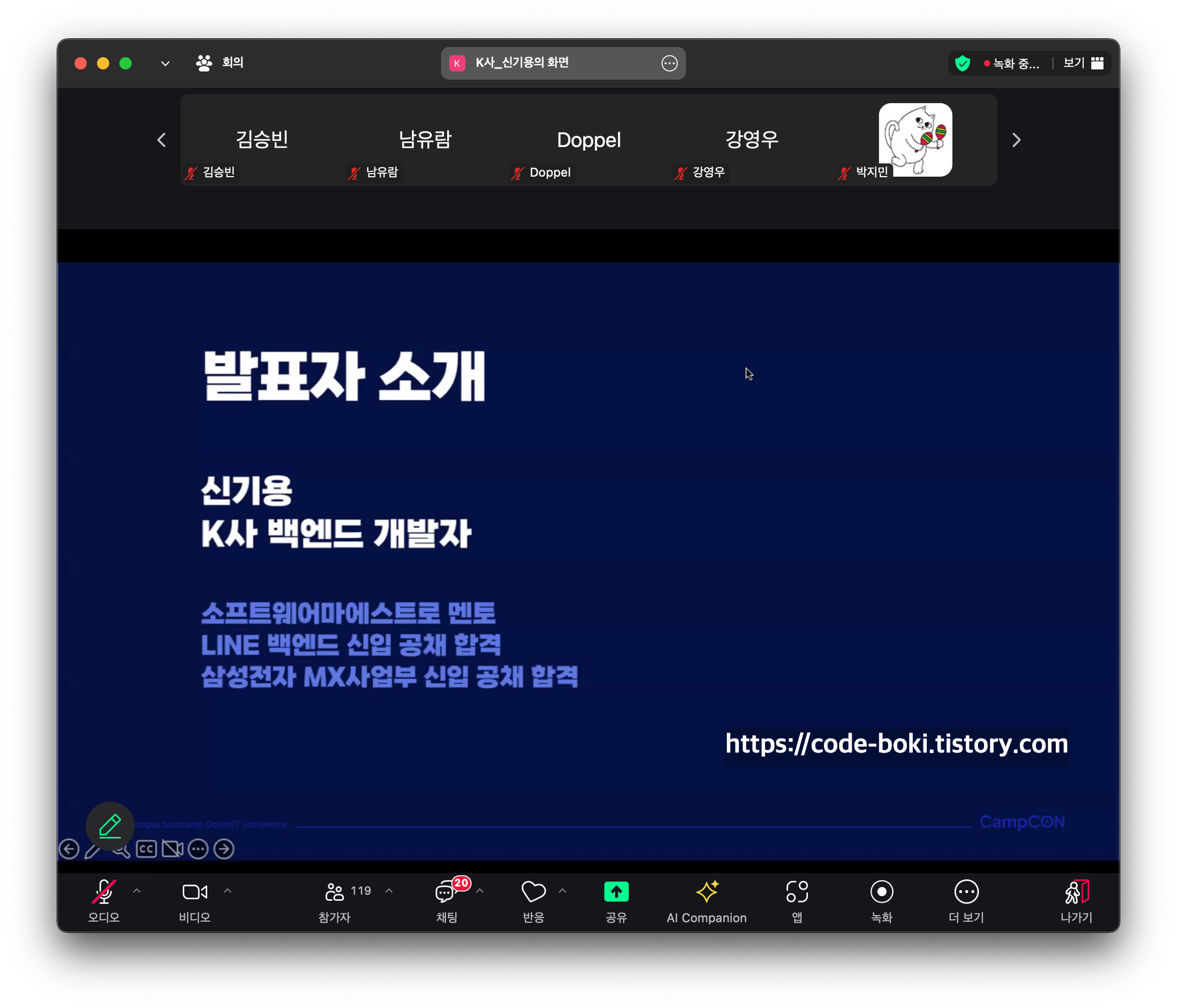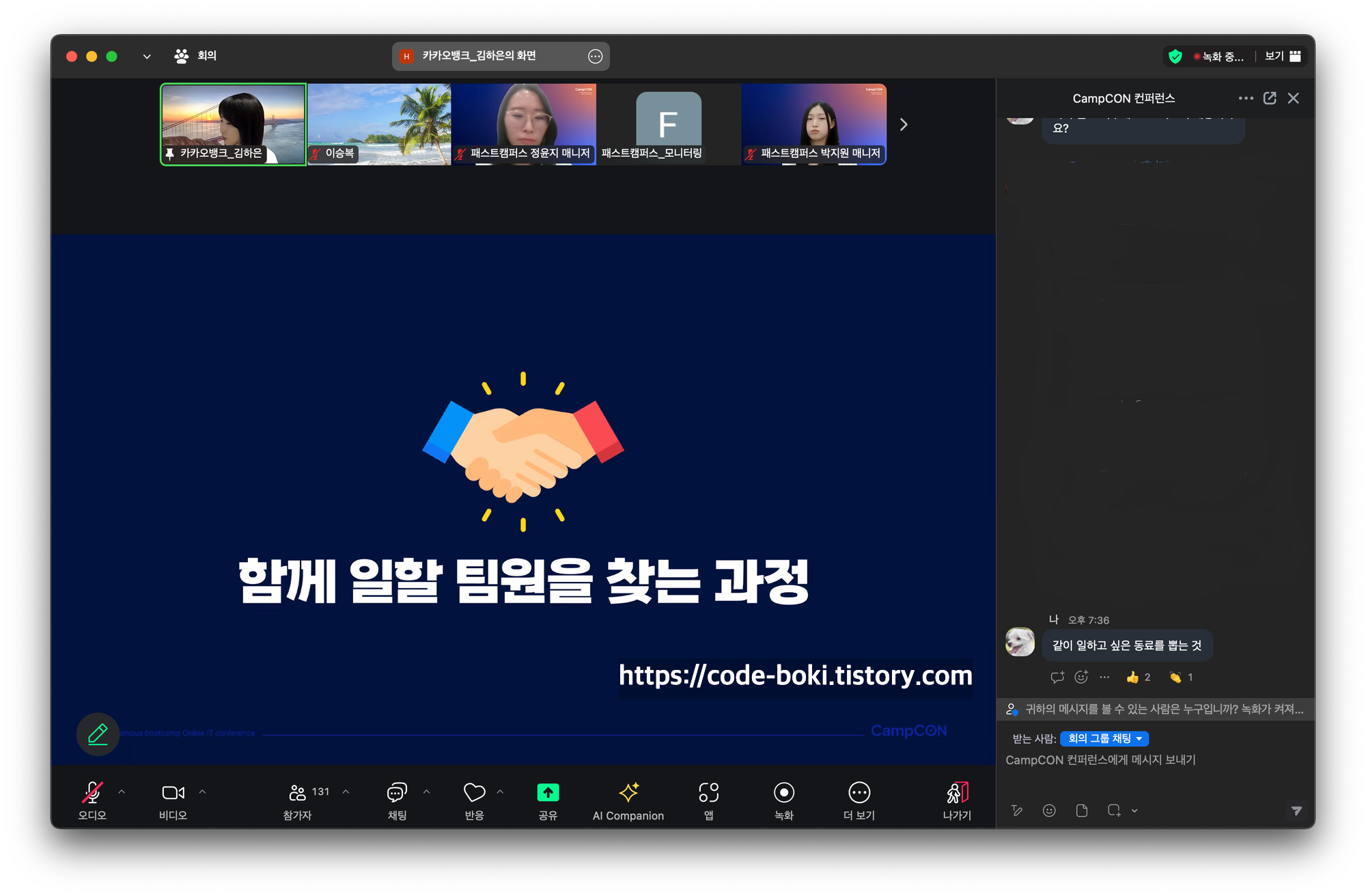 개발계의 아이돌인 기용님도 오랜만에 만나고 즐거운 온라인 행사 CampCON이었다!!