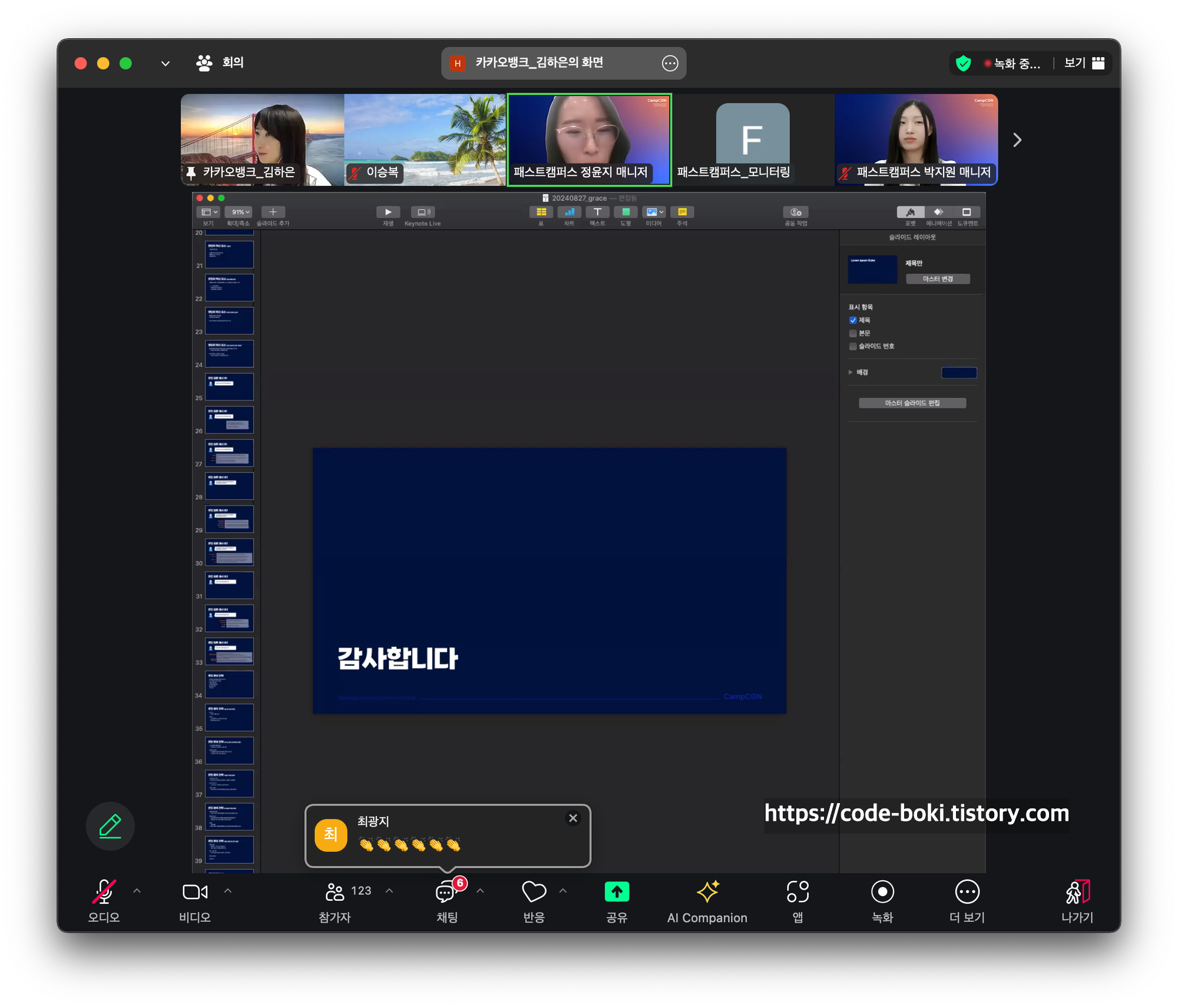 그리고 반가웠던 마음에 캠프콘이 끝나고 카톡으로 캠프콘 발표 잘 들었다고 했더니, 내가 이미 들어와있는지 알고 계셨단다ㄷㄷ