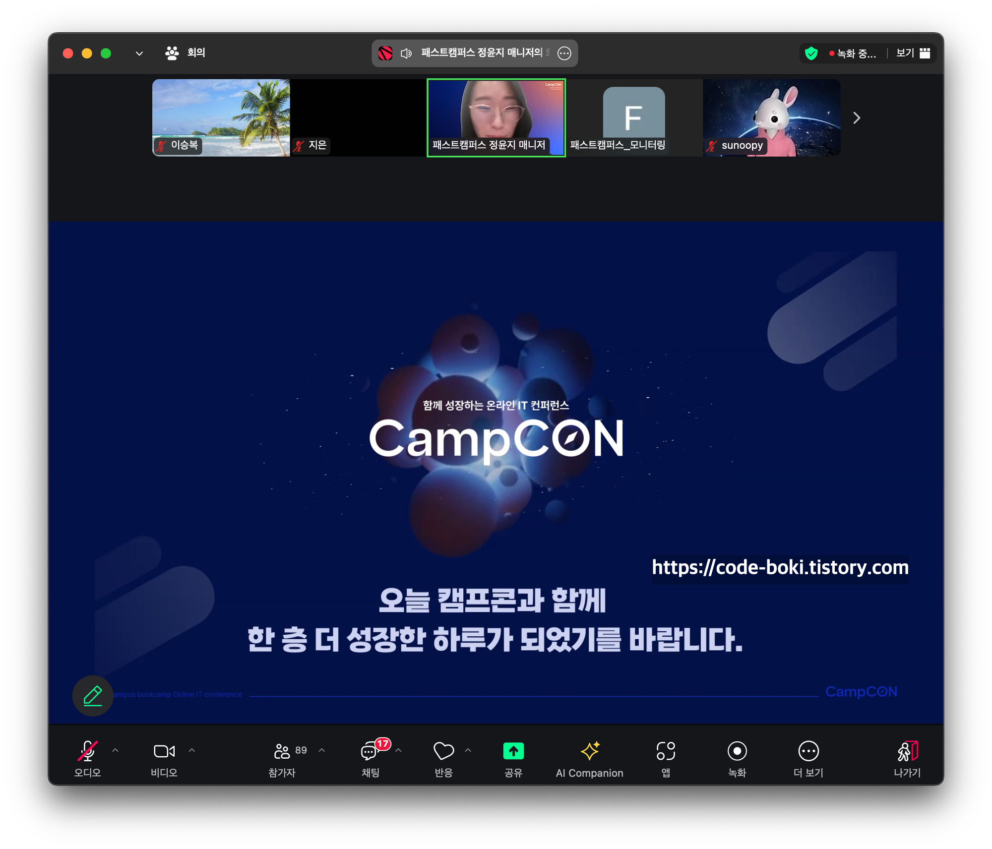 개발계의 아이돌인 기용님도 오랜만에 만나고 즐거운 온라인 행사 CampCON이었다!!