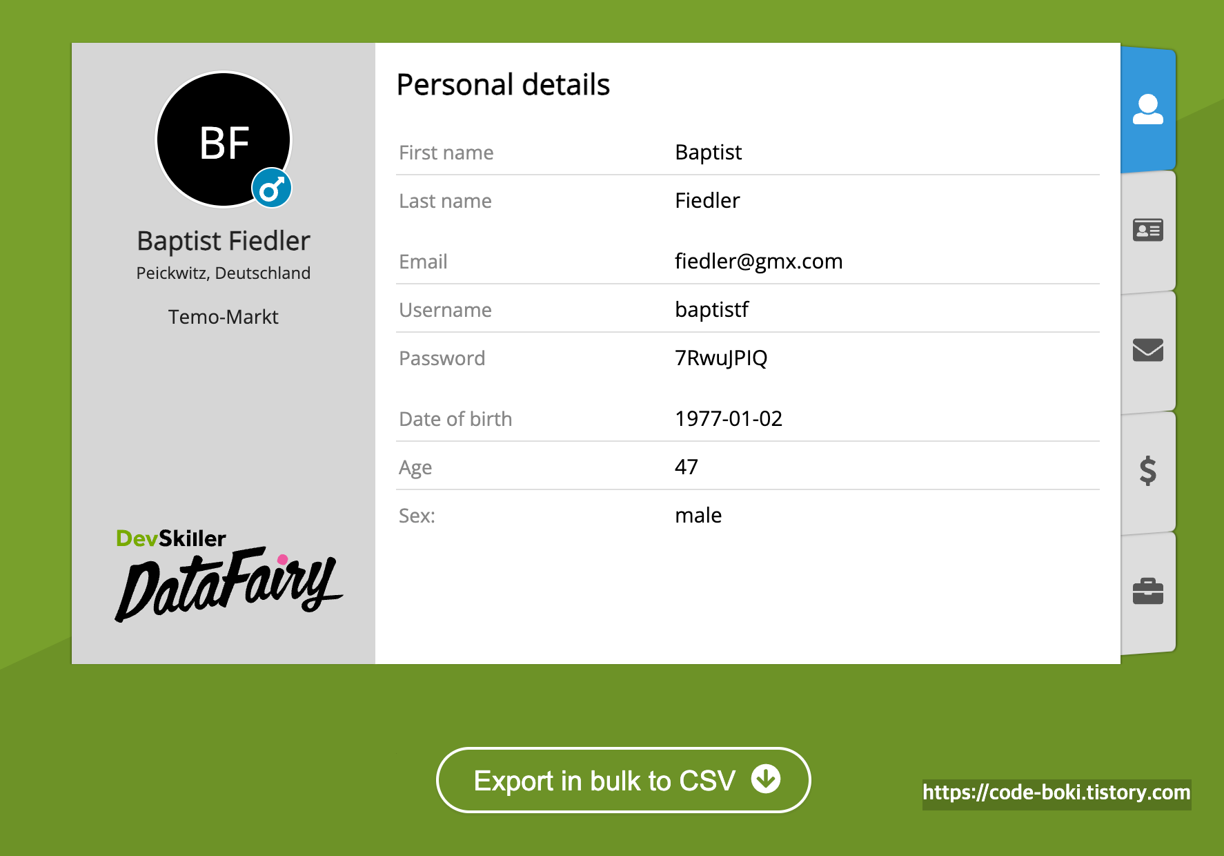 루비의 faker gem / 펄의 Data::Faker / Python의 faker 패키지 / PHP의 faker 패키지 / Javascript의 faker.js 라이브러리