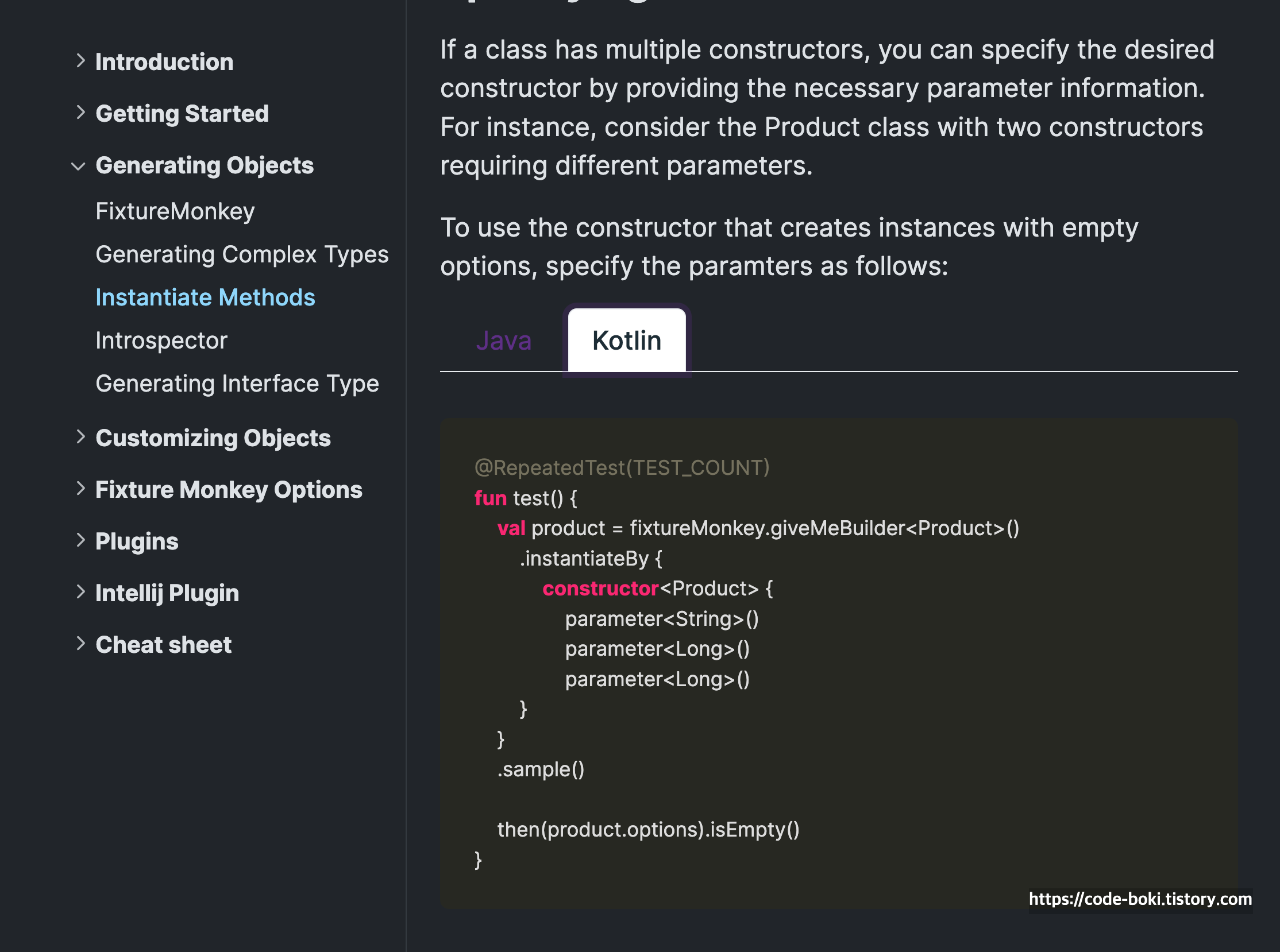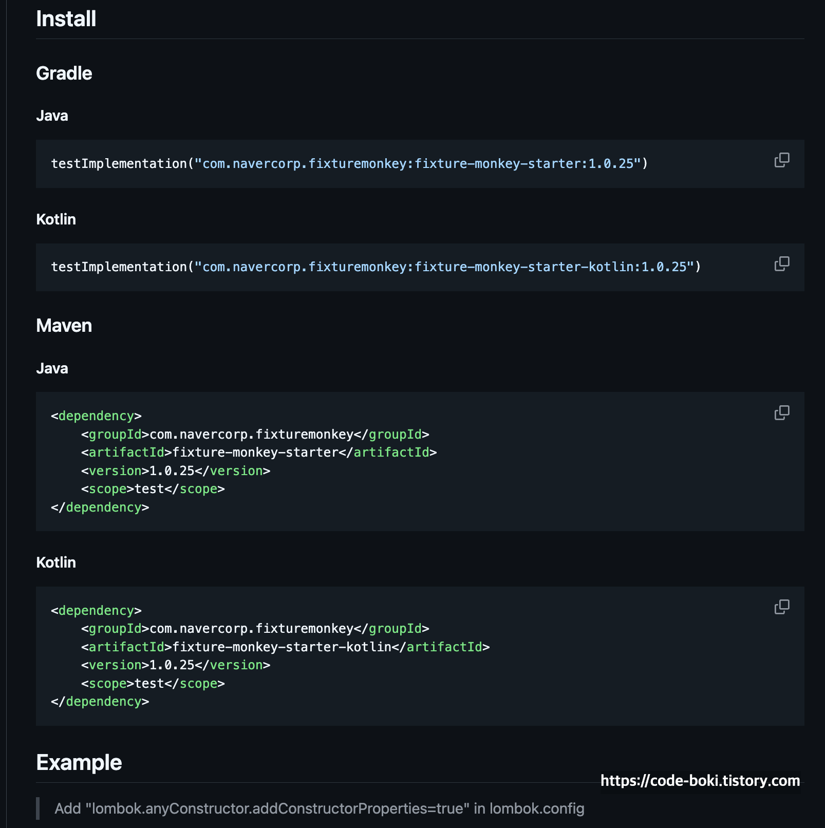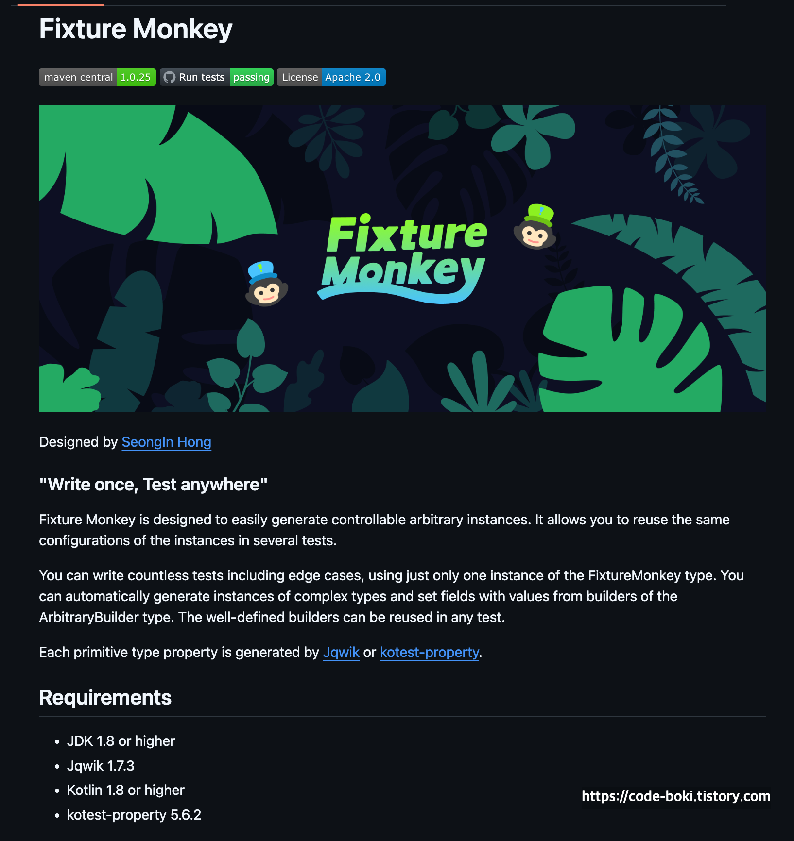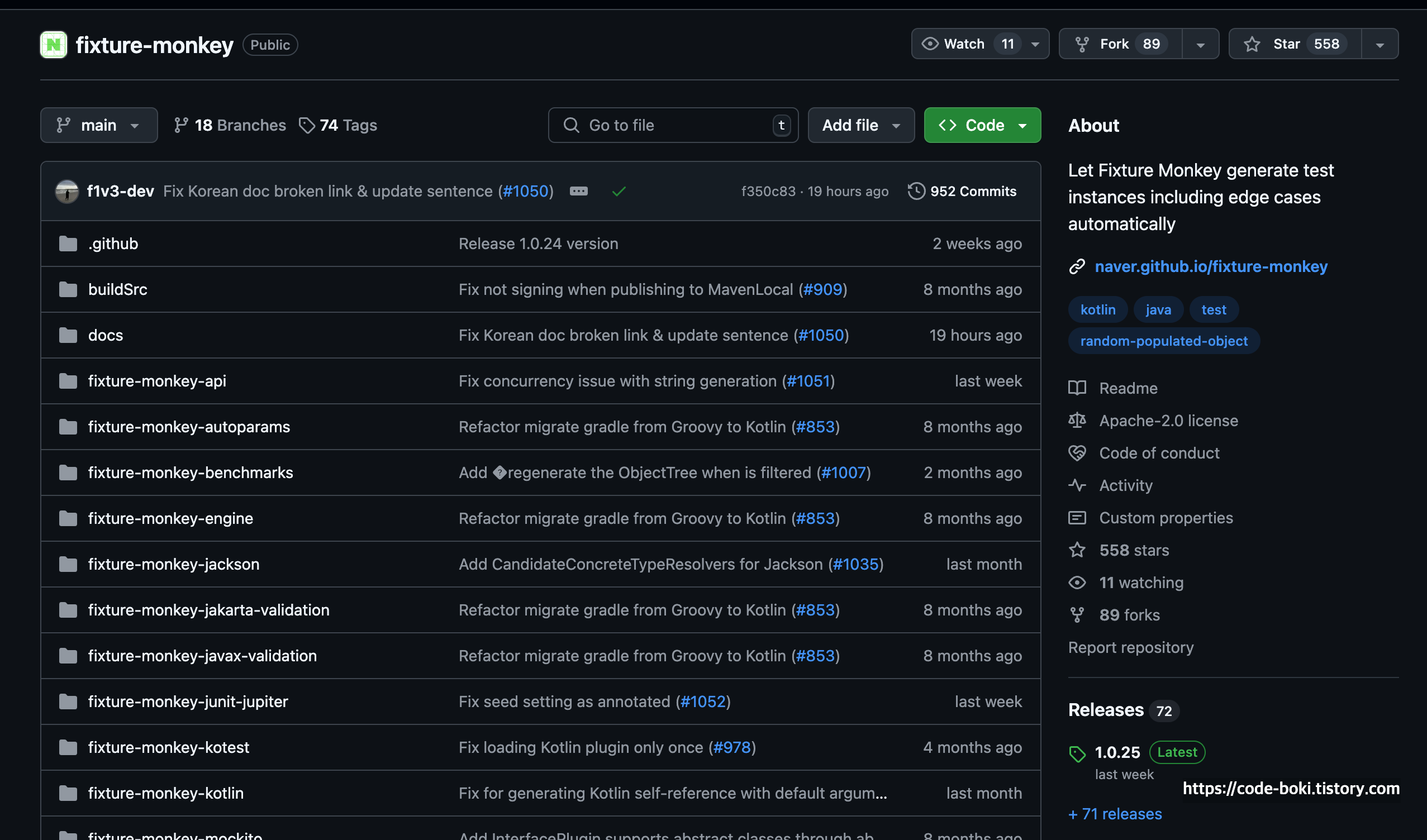 공식문서는 영어와 한글로 제공되며, Fixture Monkey에 대한 글을 주기적으로 모니터링하시고 Ariticles로 넣으시나보다 하하