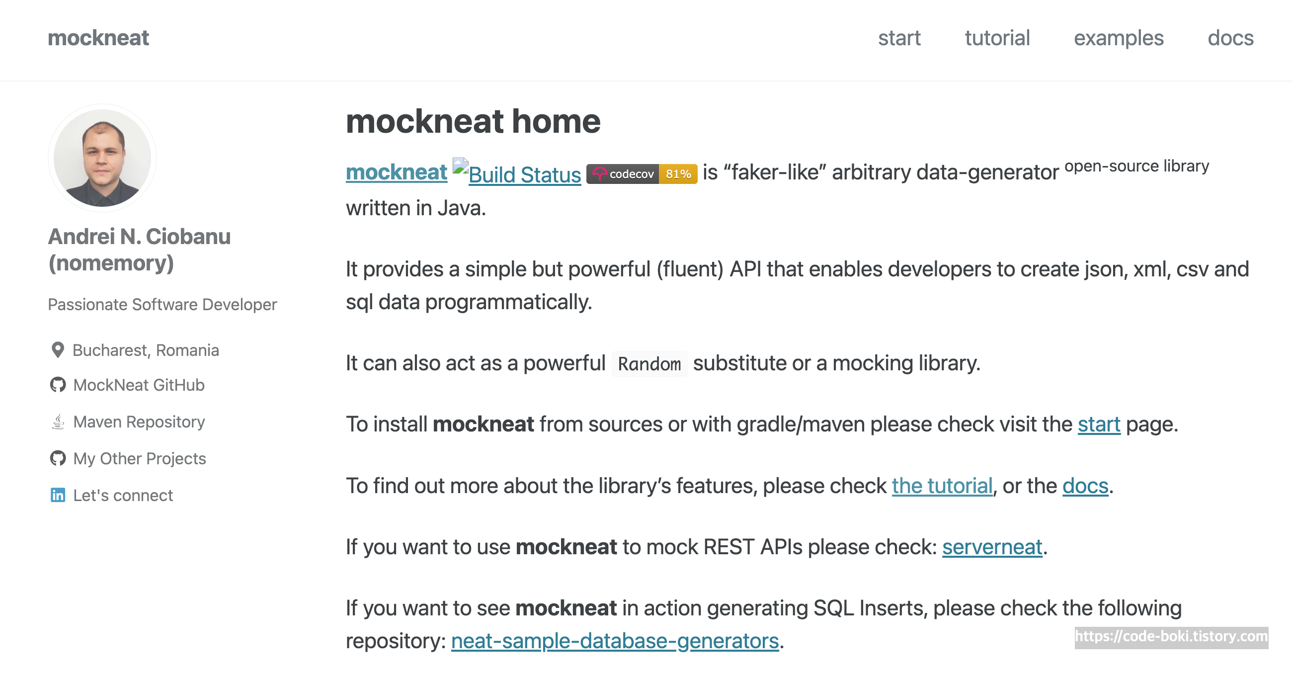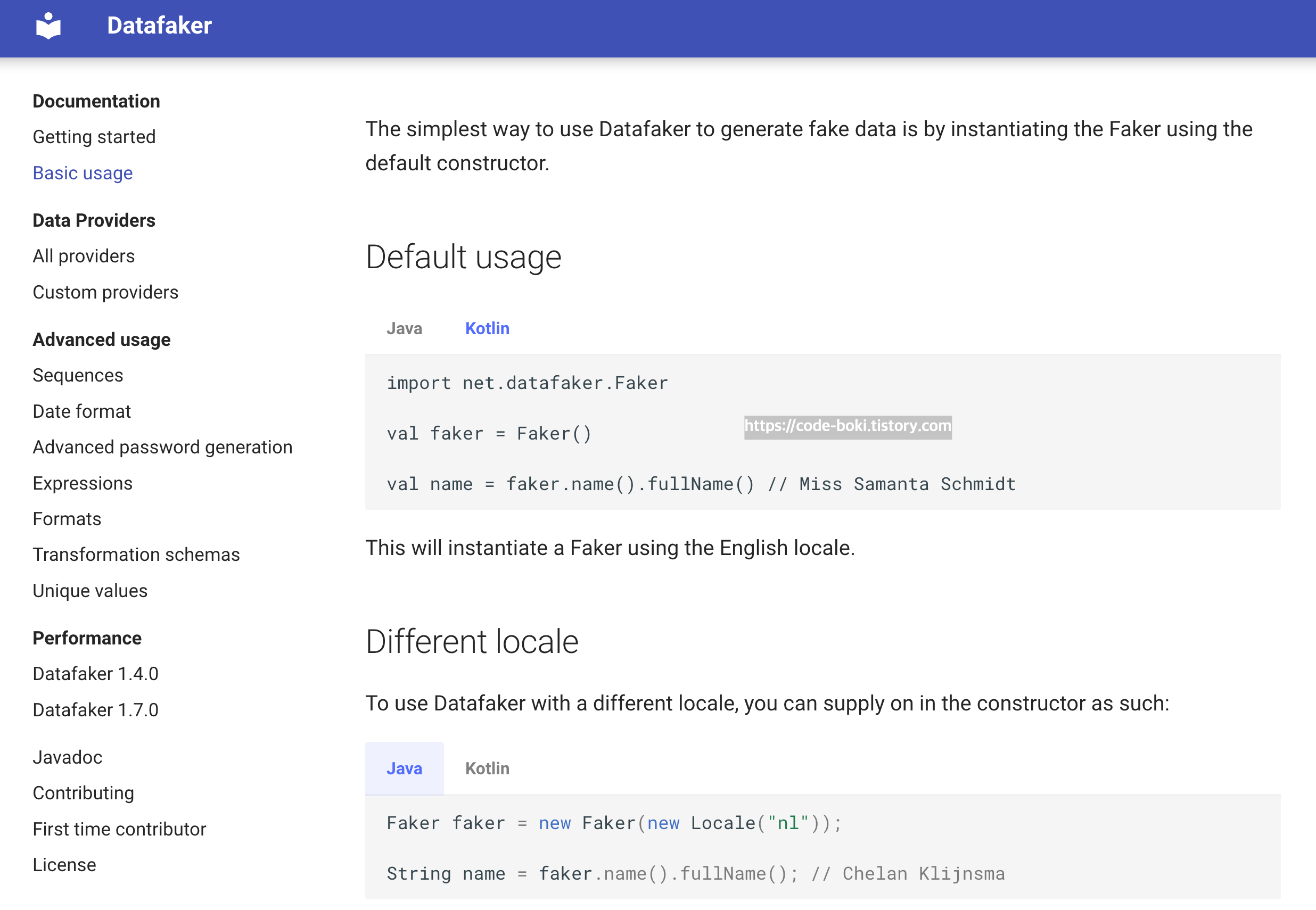 네이버형님들께는 아쉬운 얘기지만, 나는 개인적으로 datafaker의 공식문서가 더 깔끔해보였다