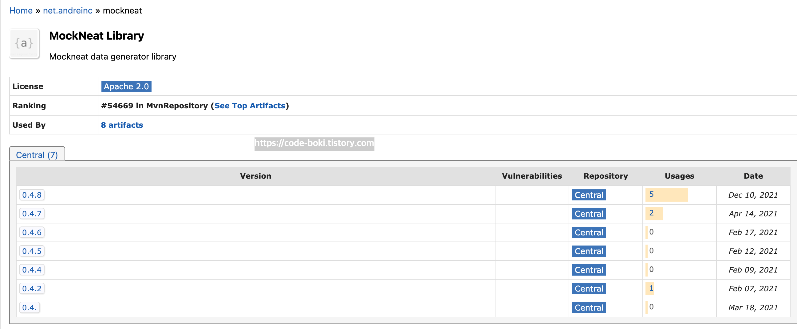 1. https://mvnrepository.com/artifact/net.andreinc/mockneat