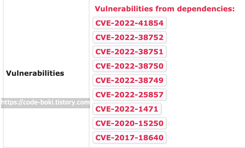 오..그래도 다른 라이브러리들에 비해 취약점이 1개뿐이다!!(ㅋㅋㅋ 기뻐해야되는거..?)