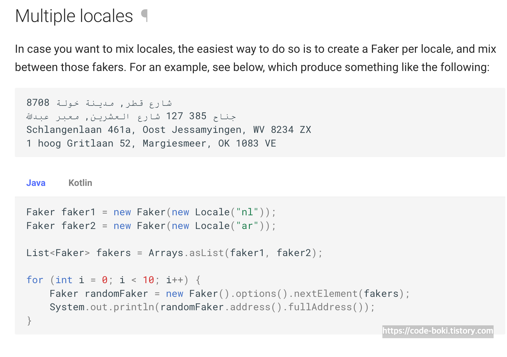 Java-Faker에서 파생되어 향상된 라이브러리이기때문에 ko locale도 지원하는 모습을 볼 수 있었다