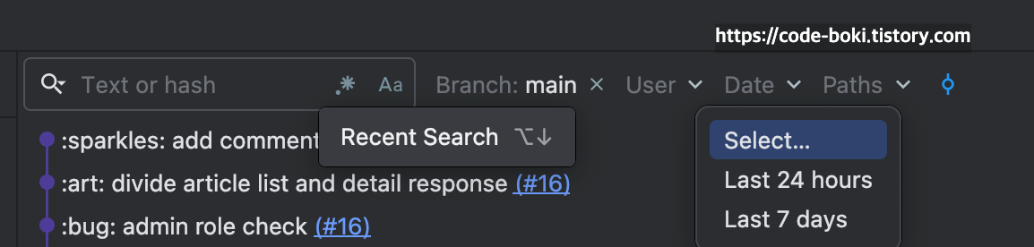 - 옵션이 많다. Text Match / Branch / User / Date