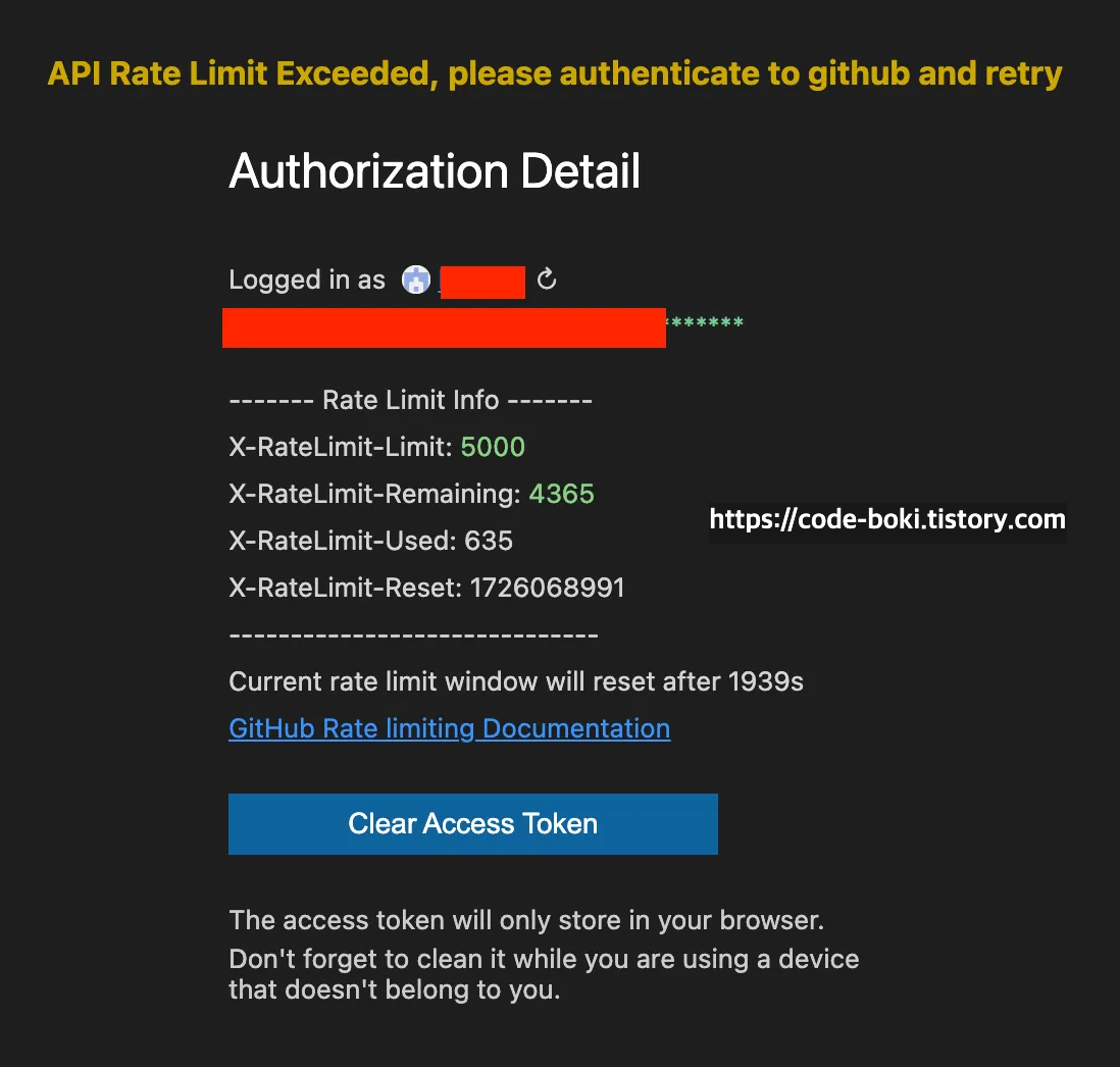 뭔가 github내의 api를 사용해서 웹 에디터를 오픈하는것 같은데, 깃허브 공식홈페이지에서 api limit을 걸어둔 모양새다
