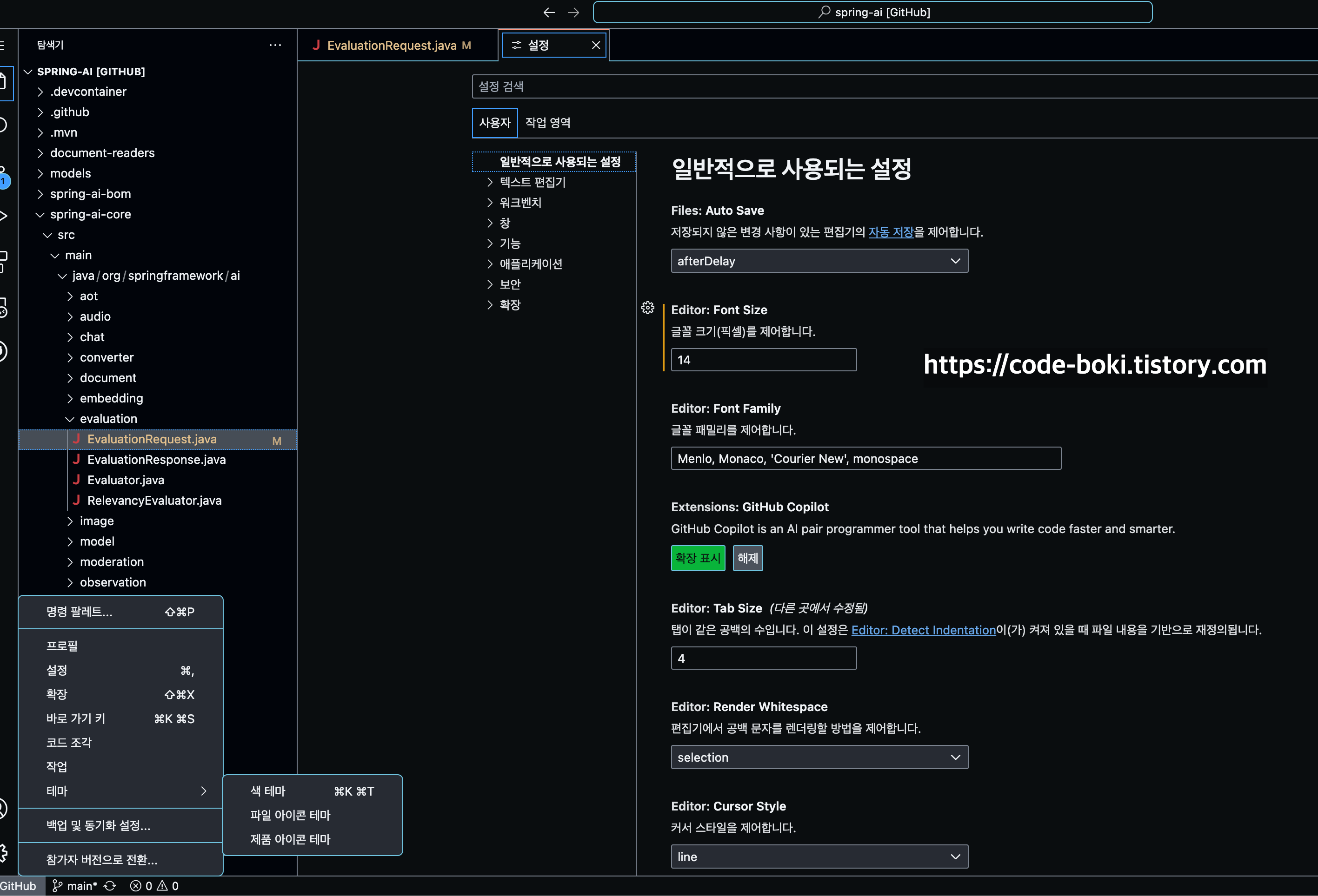 그리고 필요하다면 폰트 크기/테마도 바꿀 수 있다