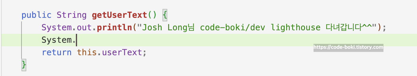 System.out.println("Josh Long님 code-boki/dev lighthouse 다녀갑니다^^");