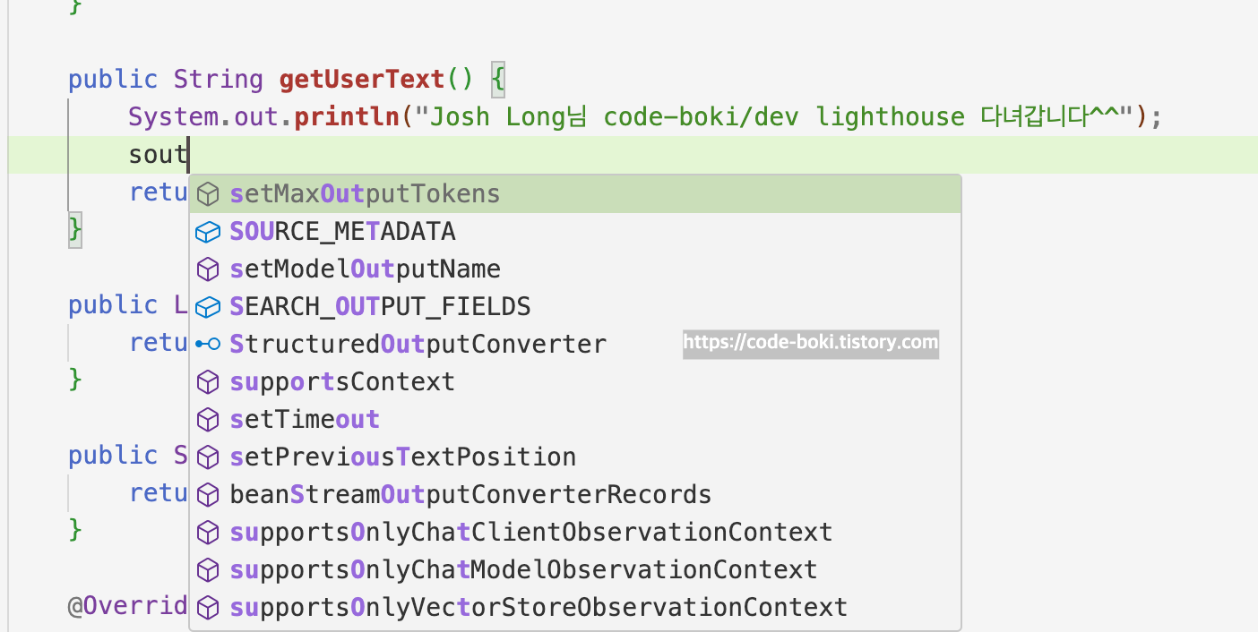 기대한바는 sout -> System.out.println()이었다