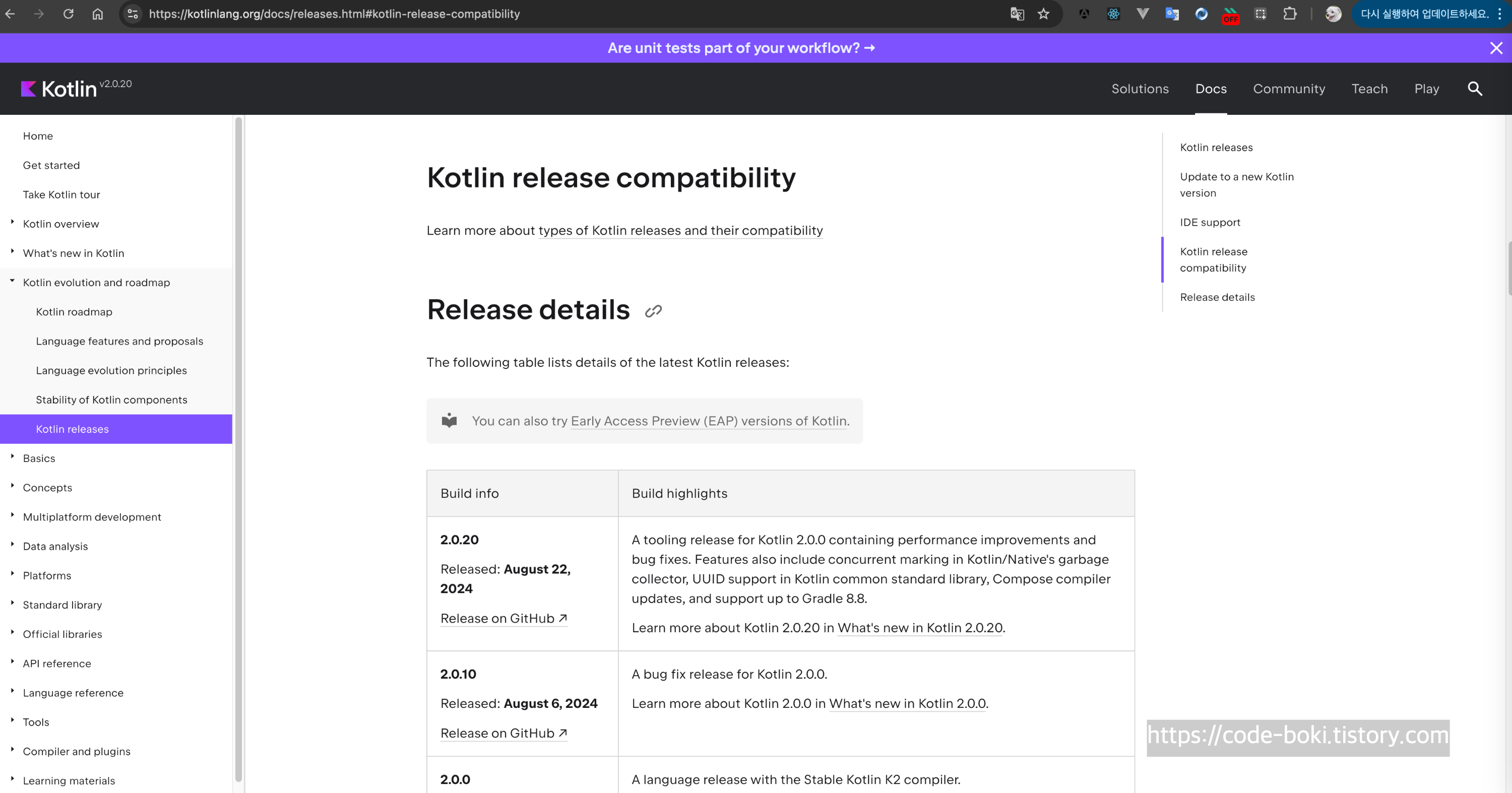 그동안 코틀린은 많은 업데이트를 거쳐 2024년 9월 29일 현재 2.0.20까지 나온 상태이다