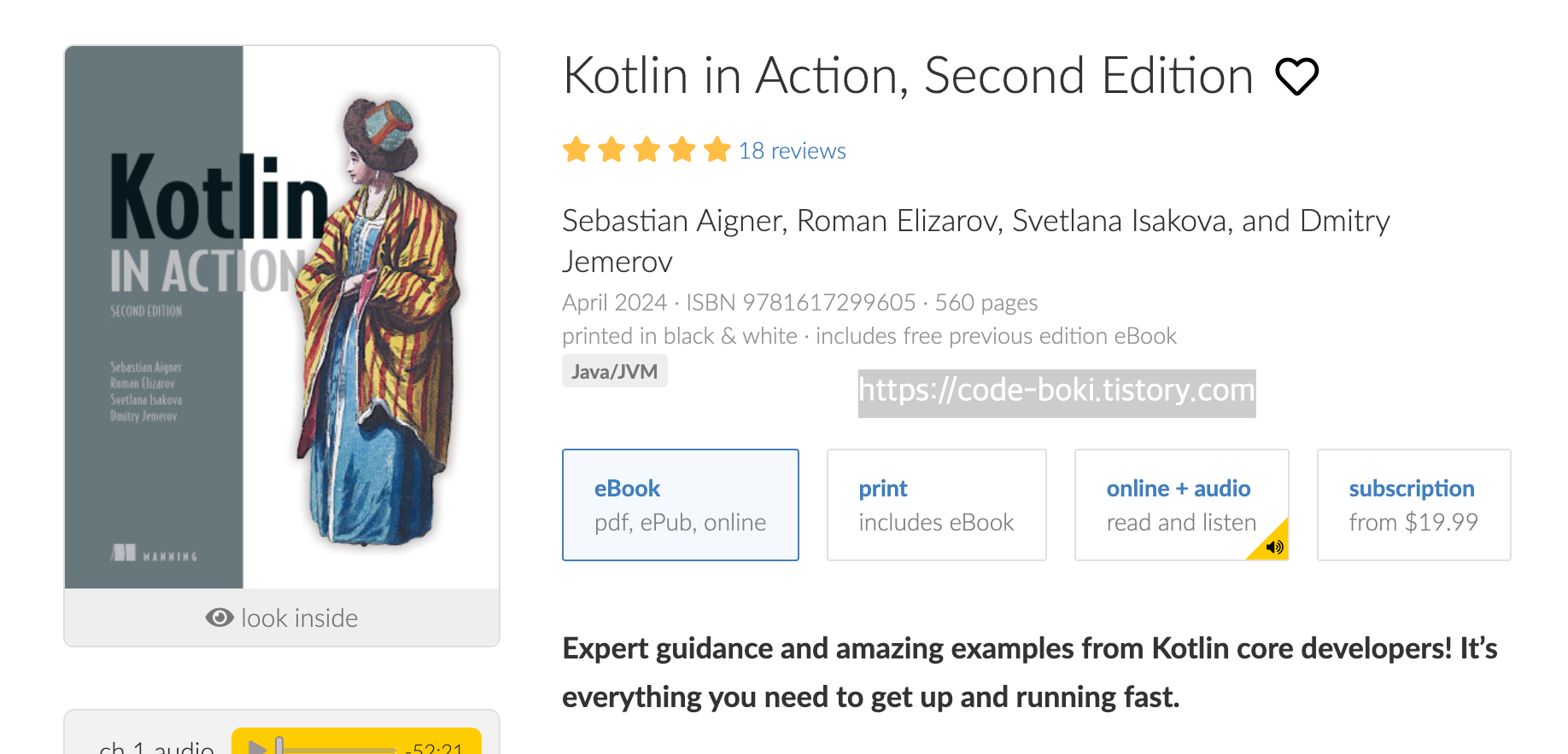 그냥 나중에 역자 또는 저자가 되고싶기도 하고 위에 말한 것처럼 영어+개발+Kotlin을 함께 공부하고 싶은 목적뿐이다