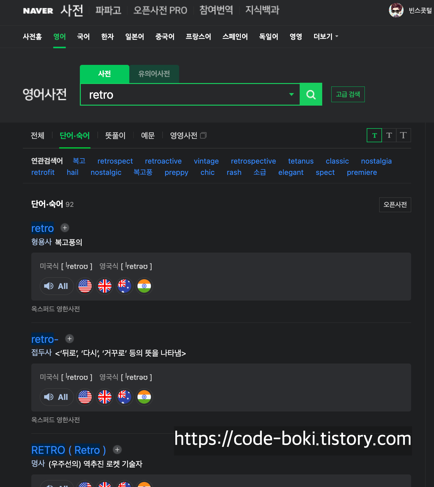 용어를 잘 살펴보면 Retro + spect로 구성된 것을 볼 수 있는데.. 각각 네이버 사전에서 검색해봤다
