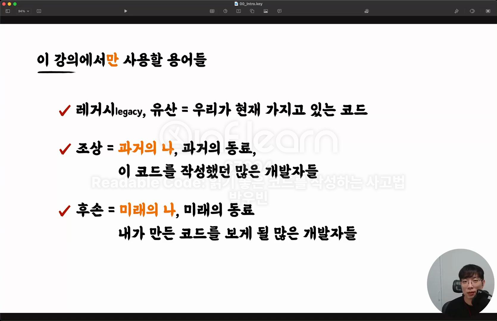 읽기 좋은 코드를 작성하기 위해서 코드레벨(추상)->객체레벨(SOLID)->패키지레벨(아키텍처)로 접근하면서 알려주는데 매우 만족스럽고, 배울 점이 많았다. 나도 3년차 개발자로서 직접 적용하고 있는 부분도 있고, 더 신경써야하는 부분도 있다는 것을 알게 됐다