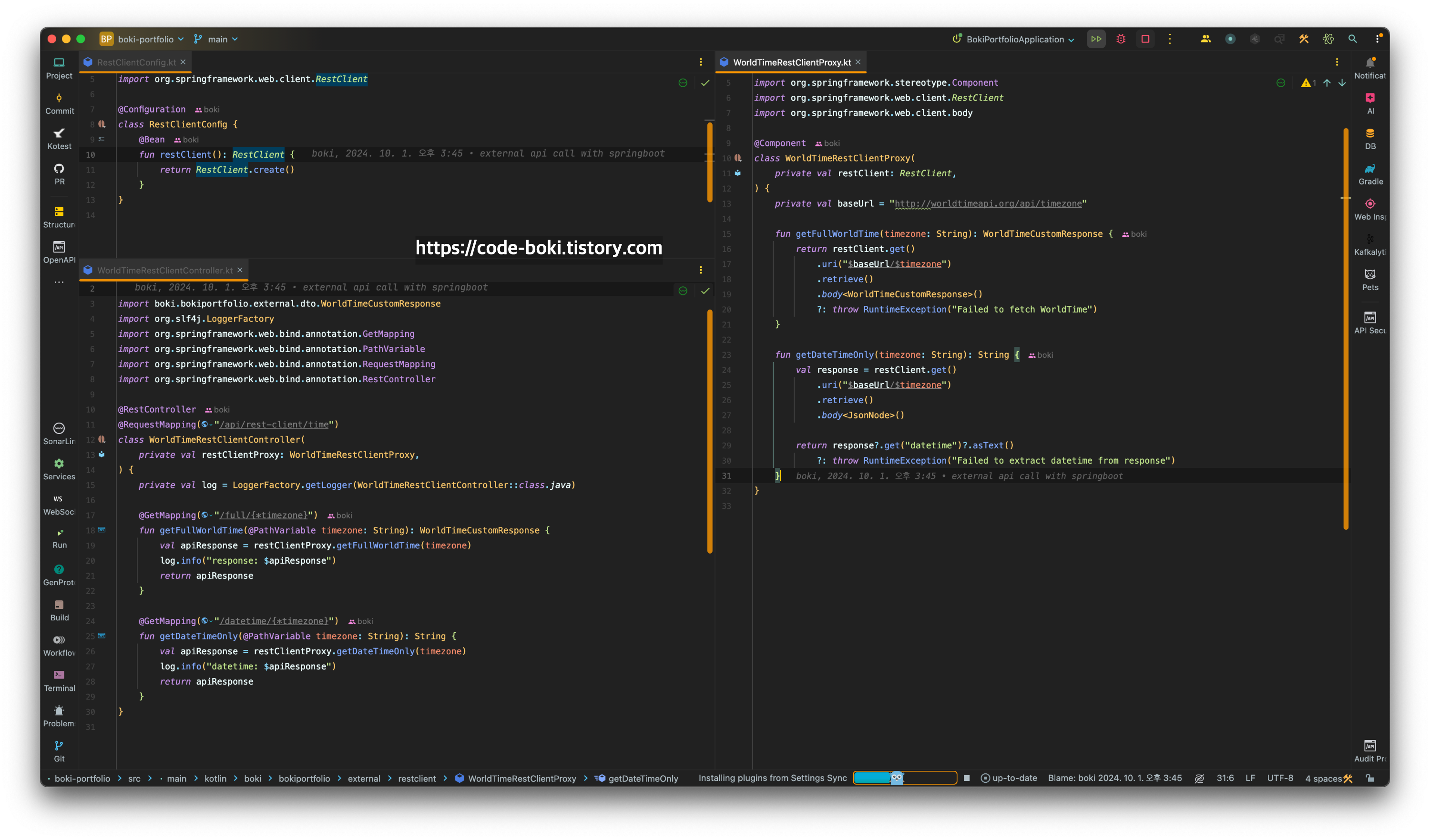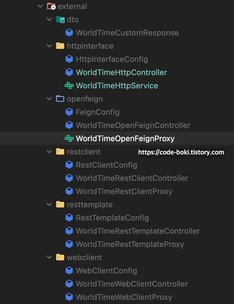 RestTemplate을 사용하기 위한 Bean 설정, 내부 구현체를 사용할 Proxy 클래스, 실제 api를 호출해볼 RestController를 만들었다