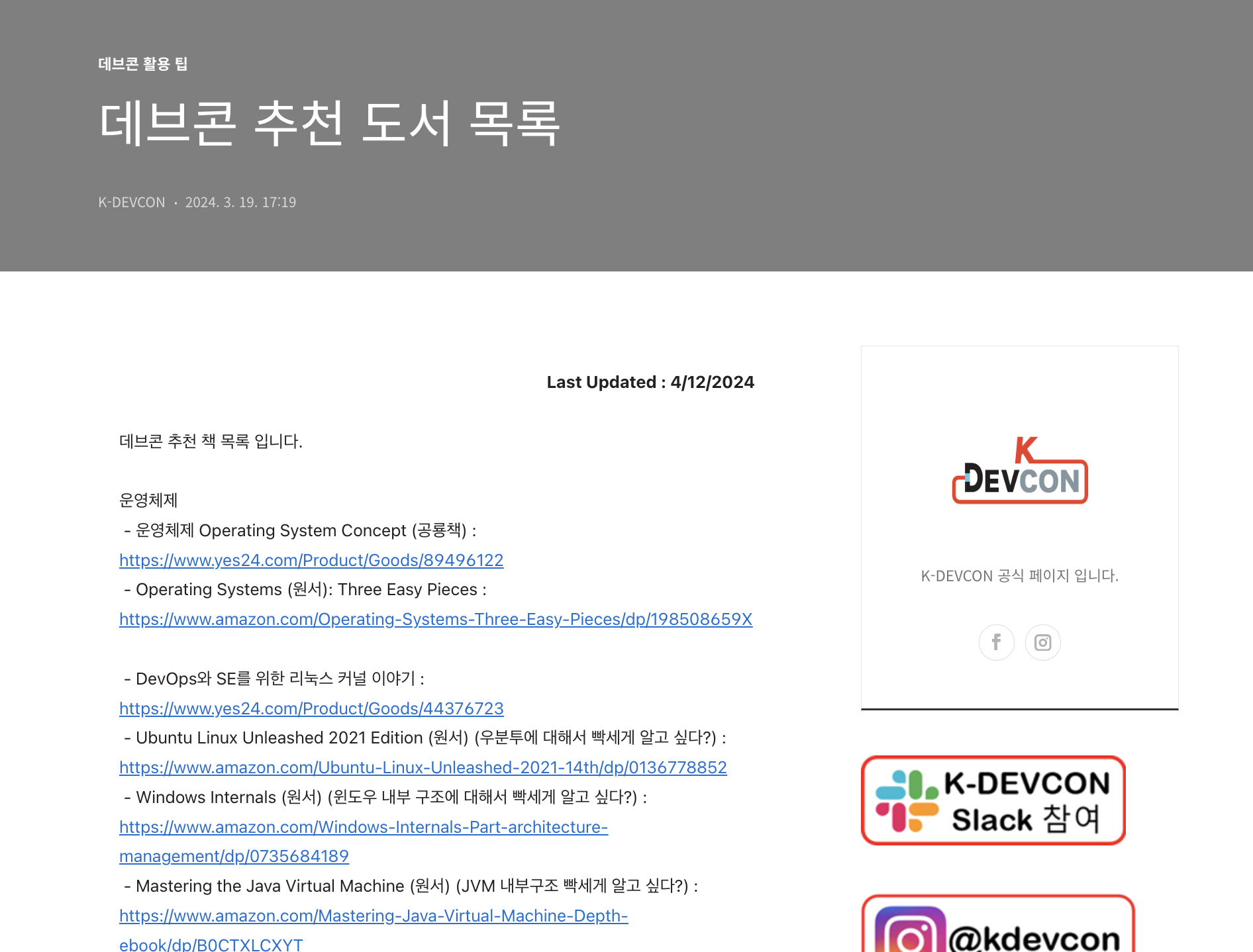 실제로 홈페이지에 들어가보면 꽤 괜찮은 개발 책 추천 글도 볼 수 있다!