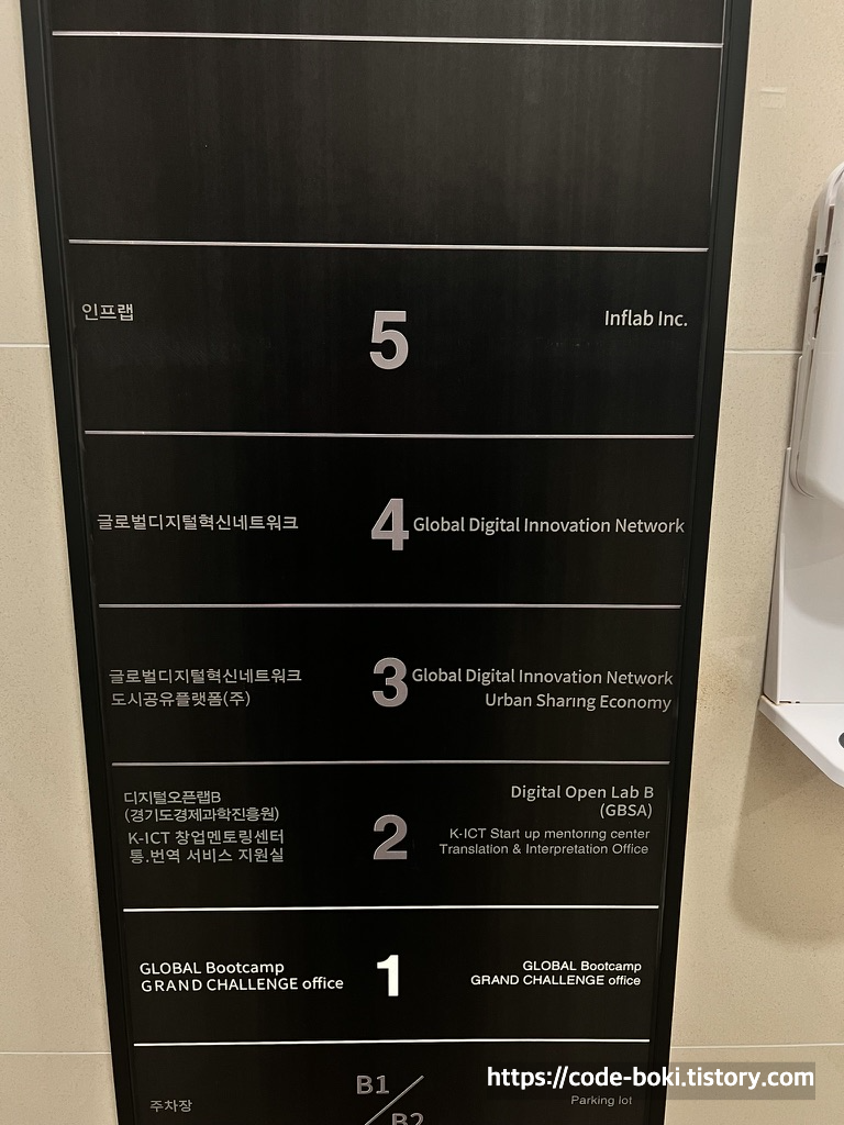 이 경기스타트업캠퍼스 건물에는 1,2,3동이 있고, 다양한 회사들이 입주해있다!