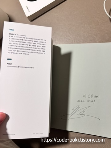 마지막으로 오늘 Next Step을 수강하며 받은 이 책의 감수를 맡으신 조영호님의 Signature를 끝으로 다음 책 리뷰로 넘어가본다