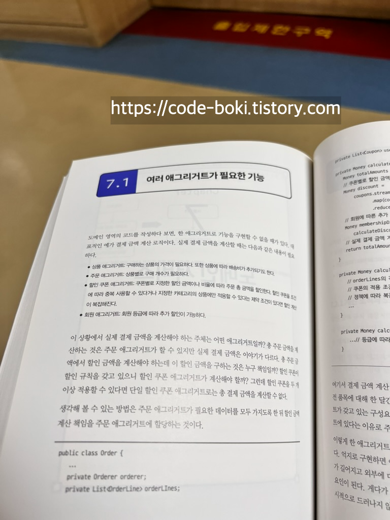 그리고 이때는 사이드이펙트를 최대한 줄이기 위해 불변 객체를 사용한다. Immutable을 만족하는 객체의 그룹 단위를 Aggregate로 묶어 처리한다