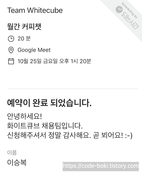 그리고 블로그에 후기도 올렸었는데, 이 점을 엄청 좋게 봐주셨는지 (주)커피챗 공동창업자님이 반겨주셨다 :)