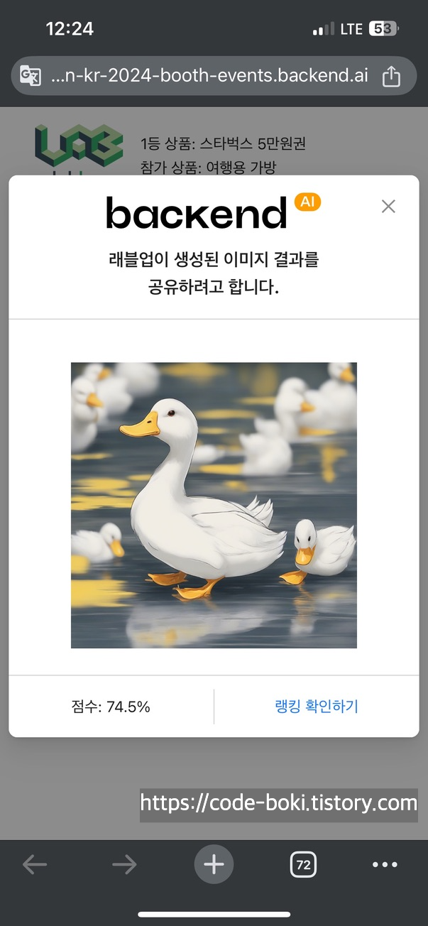 래블업이라는 회사에서는 아래 오리그림이 나오도록 프롬프트를 받고, 유사도(점수)로 상품을 나눠주고 있었다!!