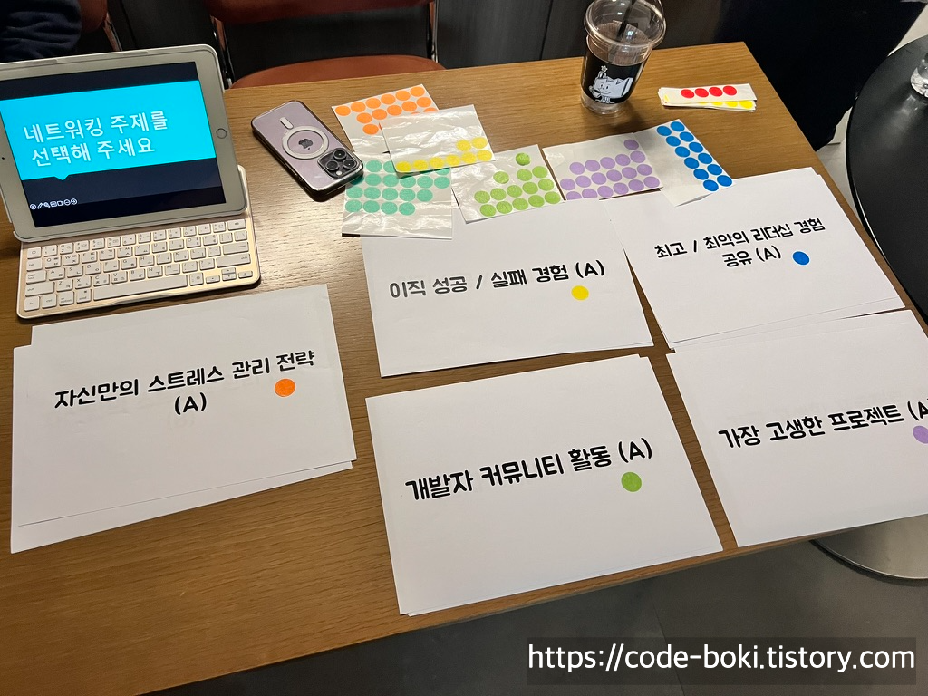 입구에서 참석대상자인지 여부 체크를 거친 후에 네트워킹 주제를 선택할 수 있었다