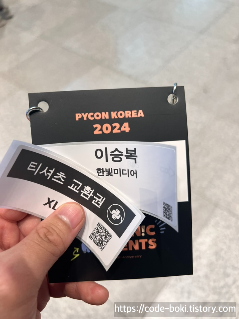 사전에 파이썬 티셔츠도 구매하겠다는 의사를 밝혔기 때문에 티셔츠 구매권도 함께 받았다(선입금)