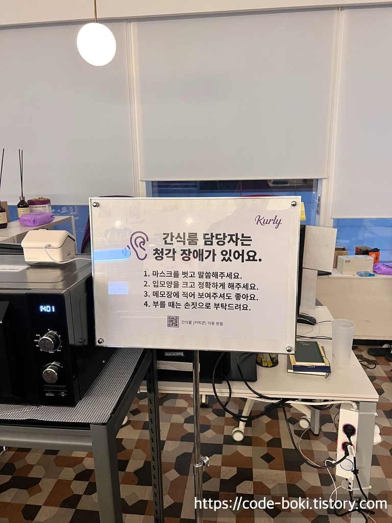 엄청 큰 고기 모형도 있었고, 컬리 냉장고와 간식룸 담당자 주의사항 등을 볼 수 있었다