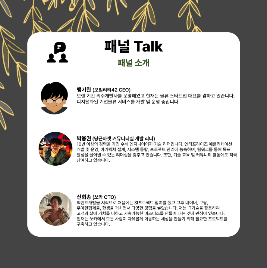 앞선 발표에서처럼 멋있고 대단한 C레벨분들이 패널로 참여해주셨다.. 어벤져스같은느낌!!
