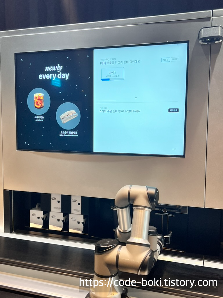 1층에 보면 로봇이 커피를 만들어주는 곳이 있는데..... 저번에 왔을 때는 되게 잘 만들어줬는데 이번에는 좀 이상했다;;