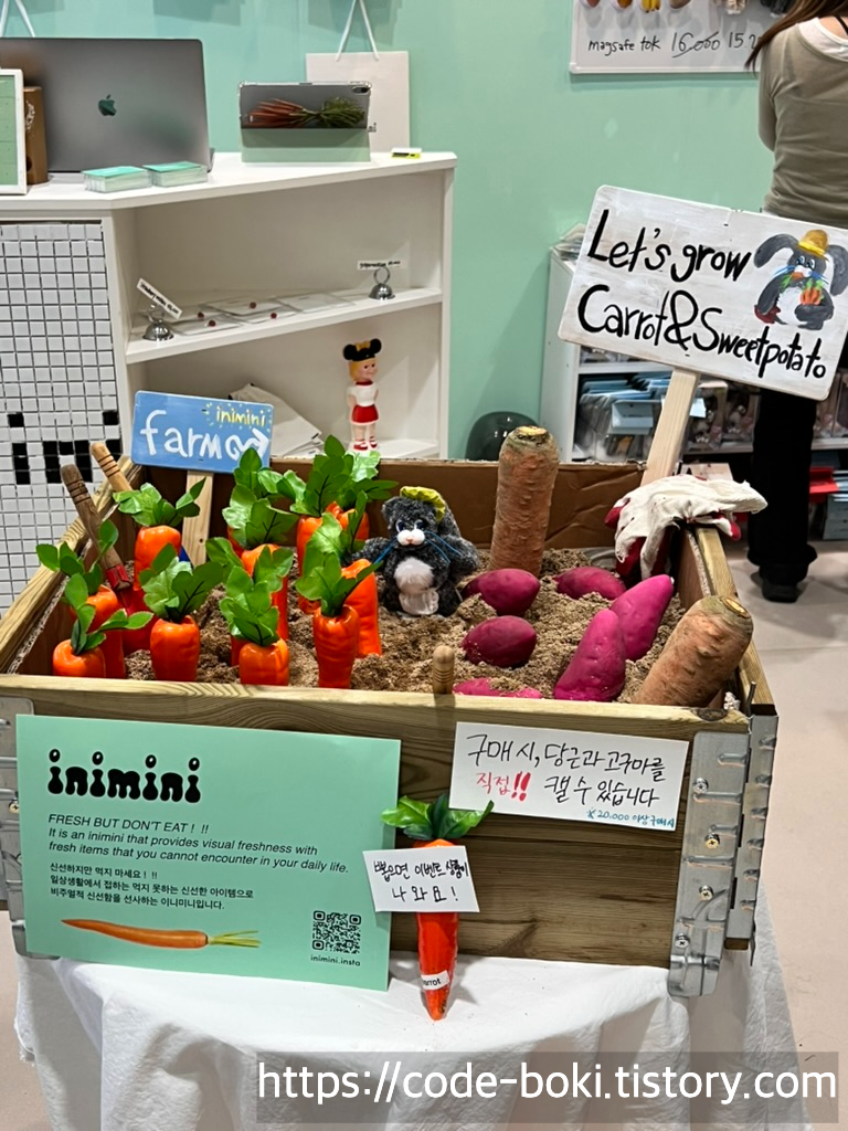 이곳에서는 채소랑 과일에 관련된 제품들을 판매하고 있었는데, 난 별그램 팔로우를 하고 고구마, 가지, 당근중에 고민하다가 나중에 당근으로 바꿨다.....!!