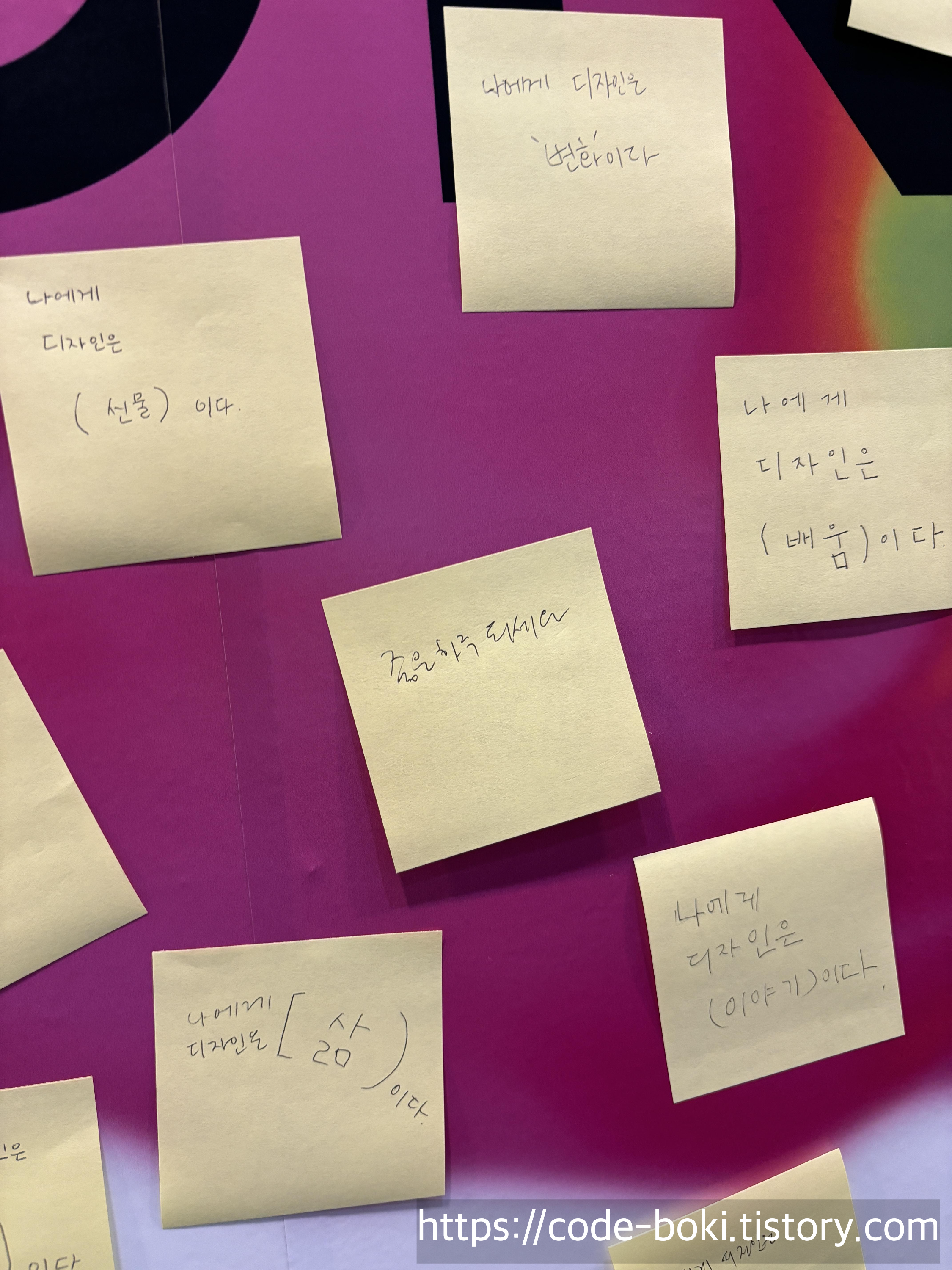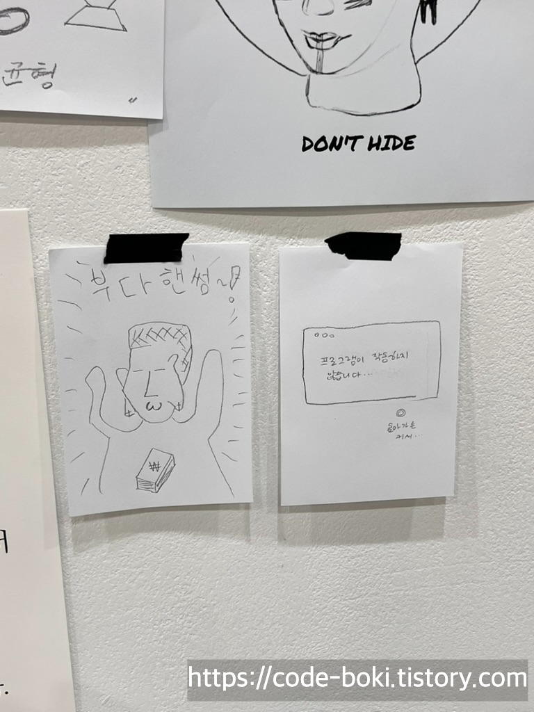 하지만... 나는 앞뒤문법이 하나도 맞지 않는 그냥 드립만 날리면서 포스트잇을 붙이고 왔다 ㅋㅋㅋㅋㅋ