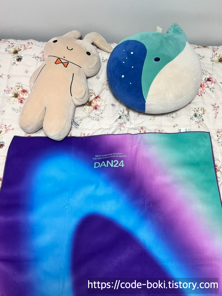 이번에 받은 네이버페이 펫 인형, DAN24 담요까지 해서 또 내 방에 이것저것 둘게 많아졌다!! ㅎㅎ
