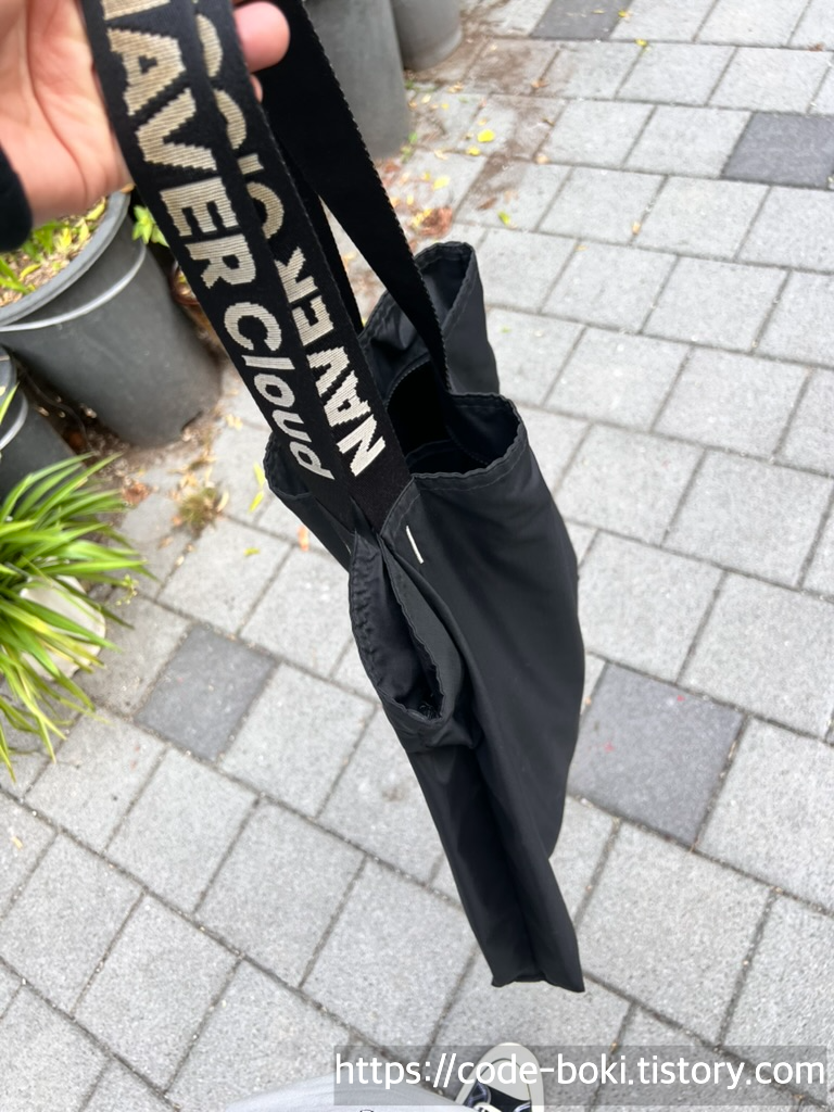 1일차는 백팩을 메고 갔었는데, 2일차는 2022년 네이버클라우드 써밋 온라인 이벤트에서 당첨돼서 받은 가방을 들고 참가했다